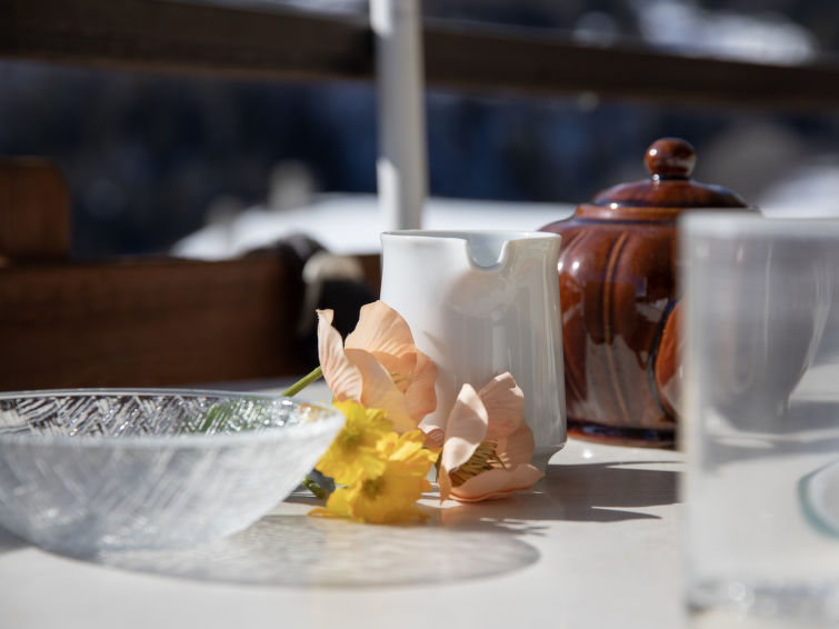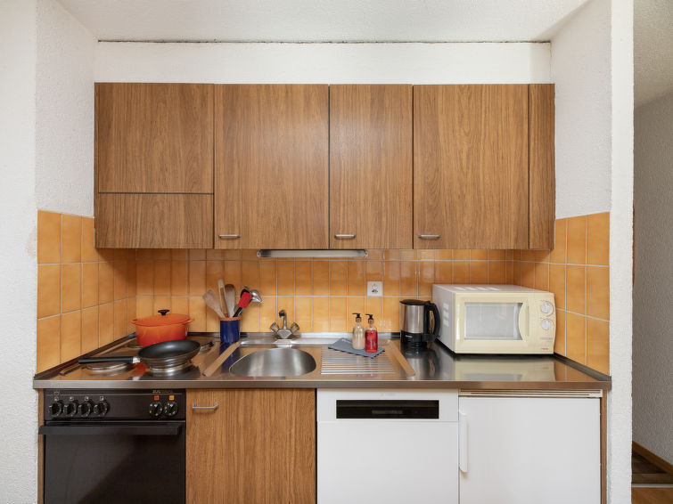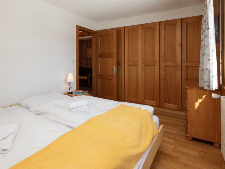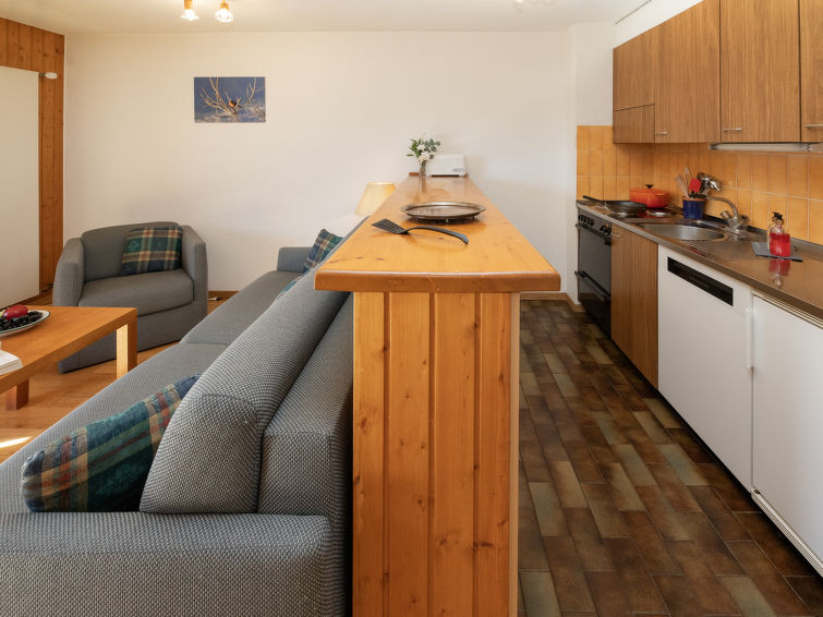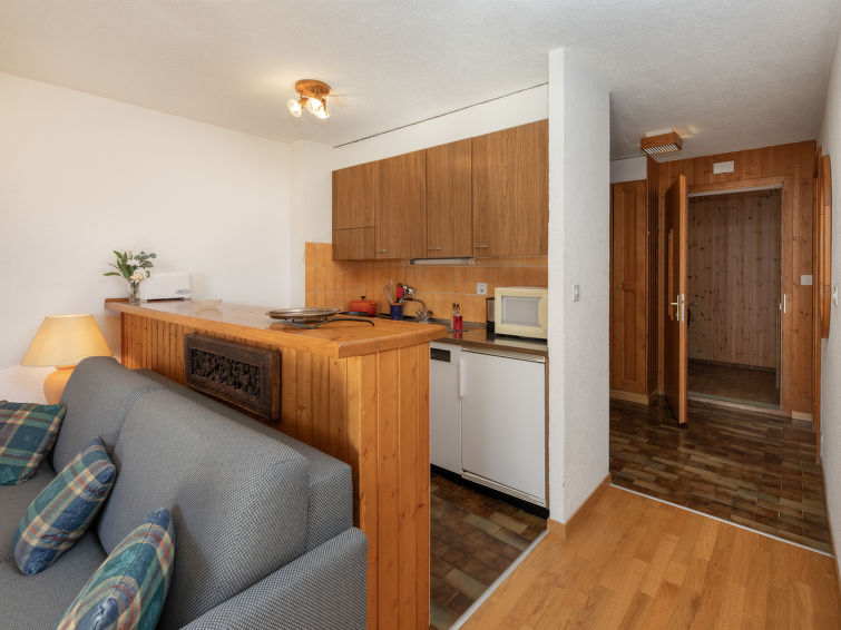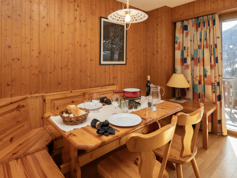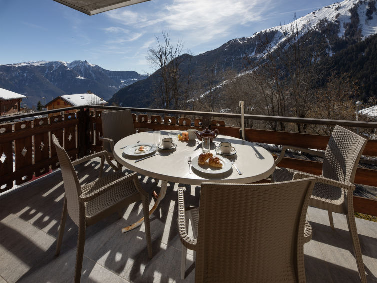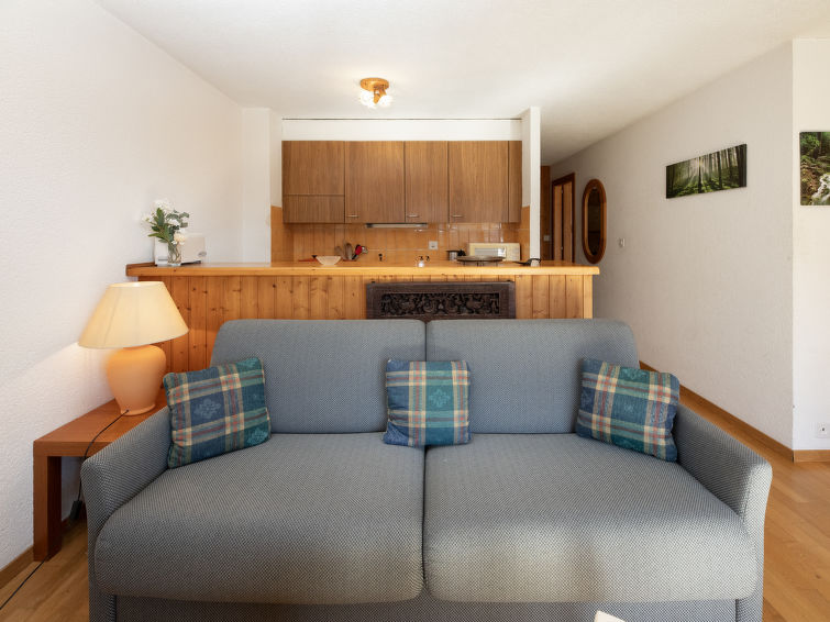"Tourbillon B 27", 2 rom leilighet 45 m2 i 2nd etasje, beliggenhet mot sør-vest. Komfortabelt og smakfullt møbler: stue/spisestue med, 1 dobbel sovesoffa (1 x 160 cm, lengde 190 cm), kabel-TV og stereoanlegg. Utgang til balkongen. 1 rom med 2 senger (90 cm). Kjøkkenkrok (3 kokeplater, stekeovn, oppvaskmaskin, mikrobølgeovn, elektrisk kaffemaskin, Internet(Nespresso), ekstra (chinoise, ost)). Dusj/WC. Balkong 8 m2, beliggenhet mot sør. Terrassemøbler, liggestoler (2), lager. Vakker utsikt av fjellene. Fasiliteter: strykejern. Internett (trådløs LAN [WLAN], gratis). Parkeringsplass. Vennligst merk: røykfri bolig. Max 1 lite kjæledyr / liten hund tillatt. In the house "Tourbillon B.".