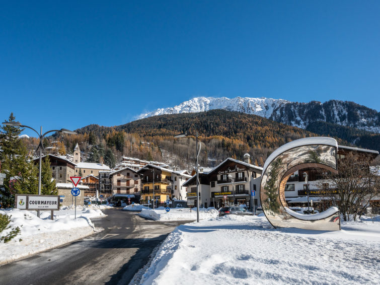 Fin residens "Universo", 1'000 m.o.h. I sentrum av Pre Saint Didier, 6 km fra sentrum av Courmayeur. I huset: resepsjon, trådløst LAN [WLAN], badstu (ekstra). Boblebad (ekstra). Heis, skirom, sentralvarme, oppvarming kun tilgjengelig fra 15.Okt. - 15.Apr.. Innendørs pool 50 m, termalbad "QC Terme" 100 m. Kabelbane 4.9 km, gondolheis 6.3 km, skibussholdeplass 50 m. Attraksjoner i nærheten: Sky Way Monte Bianco 8.3 km. Velkjente skiområder: Courmayeur 6 km, La Thuile 10 km. Vennligst merk: Bildet er et eksempel. Det er flere lignende leiligheter i samme hus.