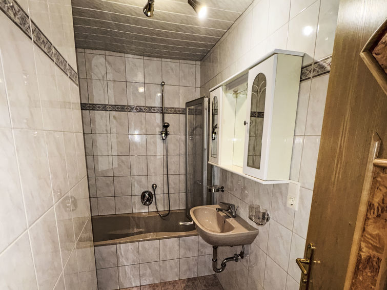 5 rom leilighet 100 m2 på 2 etasjer i 1st etasje. Rustikt og koseligt møbler: inngang. Stue/spisestue med, spisehjørne og satelit-TV. Utgang til balkongen. 1 rom med skråtak med takvindu med, 1 sovesoffa, 1 dobbeltseng og dusj/WC. 1 dobblet rom. Utgang til balkongen. 1 rom med 2 senger og 1 x 1 køysenger. Åpent kjøkken (4 kokeplater, stekeovn, oppvaskmaskin, mikrobølgeovn). Bad, sep. WC. Toppetasje: (bratt trapp), 1 rom med skråtak med takvindu med, 1 dobbeltseng (140 cm, lengde 200 cm), vaskeservant og separat WC. 2 balkonger. Balkongmøbler. Hærlig panoramautsikt av fjellene og landskapet. Fasiliteter: Internett (trådløs LAN [WLAN], ekstra). Vennligst merk: røykvarsler. In the third bedroom there is a bunkbed were two can sleep on the lower bed and one on the upper bed. Dersom utleieobjektet blir bestilt for færre personer enn det som er maksimalt tillatt, vil ikke alle soverommene stå til rådighet.