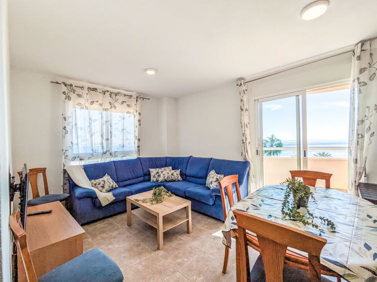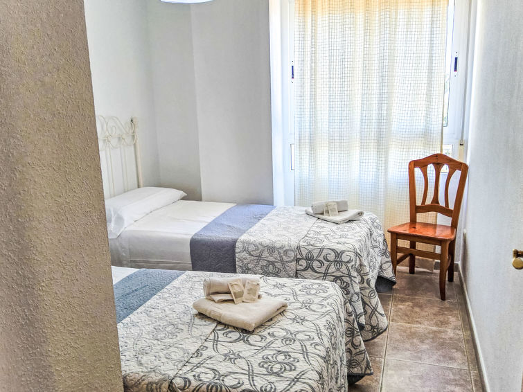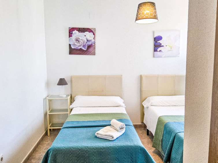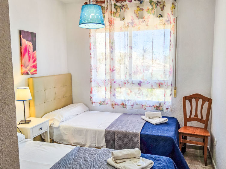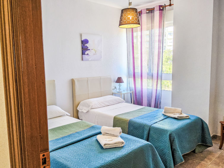 "Urbaeuropa", 4 rom leilighet 90 m2 i 1st etasje, østvendt beliggenhet. Passer for 6 voksne. Romlig og lys, enkelt og praktiskt møbler: stue/spisestue 22 m2 med, digital TV, air-conditioning og varmluft oppvarming. Utgang til terrassen. 1 rom 11 m2 med 2 senger (90 cm lengde 190 cm), bad/bidèt/WC. 2 rom 7 m2, hvert rom med 2 senger (90 cm lengde 190 cm). Kjøkken 8 m2 (stekeovn, oppvaskmaskin, 4 keramiske kokeplater, brødrister, vannkoker, mikrobølgeovn, frys, elektrisk kaffemaskin). Bad/bidé/WC. Liten terrasse. Terrassemøbler. Hærlig utsikt av havet, svømmebassenget og hagen. Fasiliteter: vaskemaskin, strykejern. Parkeringsplass plass nr 19 sotano -2. VT-437296-A
