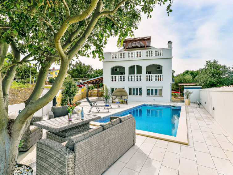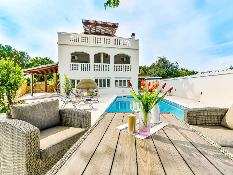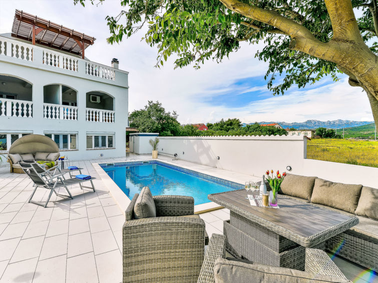 Flermannsbolig "Valentina". 35 km fra sentrum av Zadar, i utkanten, 2 km fra sentrum av Pridraga, 6 km fra sentrum av Novigrad, 25 m fra sjøen, 25 m fra stranden. Fellesbruk: tomt 700 m2 (inngjerdet) med trær, 1 badebasseng firkantet (8 x 4 m, dybde 150 cm dyp, Sesongåpent: 20.Mai. - 25.Sep.) med innbygdetrapper. Utendørs dusj, terrasse, hagemøbler, grill. I huset: internetilkobbling. Parkering ved hbrukt på tomten. Butikk 2 km, supermarked 6 km, småstenstrand 25 m.