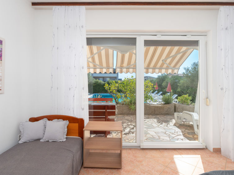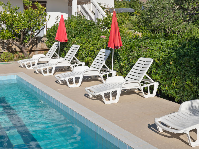 3 rom leilighet 70 m2, på bakkeplan. Vakkert og koseligt møbler: stue/spisestue 20 m2 med, satelit-TV. Inngang med, air-conditioning. 1 rom med 1 seng og 1 dobbeltseng. Utgang til terrassen. 1 rom med 2 senger. Utgang til terrassen. Åpent kjøkken (4 kokeplater, stekeovn). Dusj/WC. Oppvarming, airconditioning (ekstra). Oppvarmingsalternativ. Terrasse 20 m2 delvis dekt, beliggenhet mot sør terrasse 10 m2. Terrassemøbler. Utsikt av svømmebassenget og hagen. Fasiliteter: Internett (trådløs LAN [WLAN], gratis). Kjæledyr / hund tillatt 1 kjæledyr / hund tillatt.