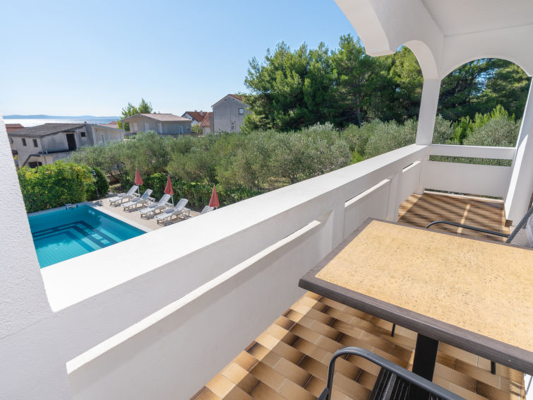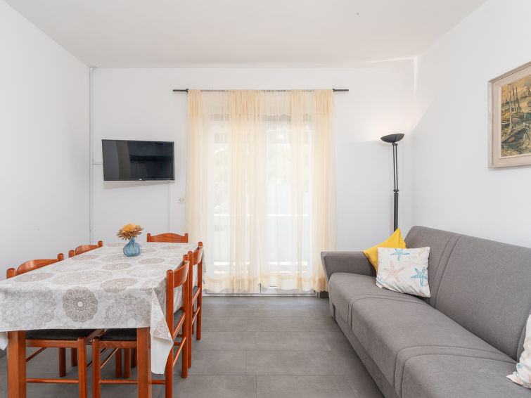 3 rom leilighet 60 m2 i 1st etasje. Stue/spisestue 20 m2 med, satelit-TV. Utgang til terrassen. Inngang med, air-conditioning. 1 rom med 1 seng og 1 dobbeltseng. Utgang til balkongen. 1 rom med 2 senger. Utgang til balkongen. Åpent kjøkken (4 kokeplater, stekeovn, frys). Dusj/bidé/WC. Airconditioning (ekstra). Oppvarmingsalternativ. Balkong 7 m2, beliggenhet mot sør, terrasse dekt. Terrassemøbler. Vakker utsikt av svømmebassenget og hagen. Fasiliteter: Internett (trådløs LAN [WLAN], gratis). Kjæledyr / hund tillatt 1 kjæledyr / hund tillatt. Distant view on the sea.