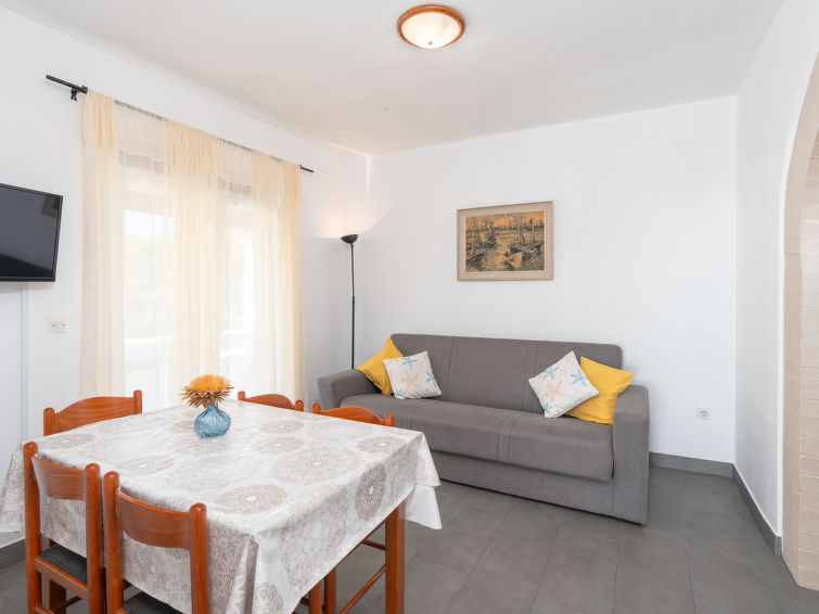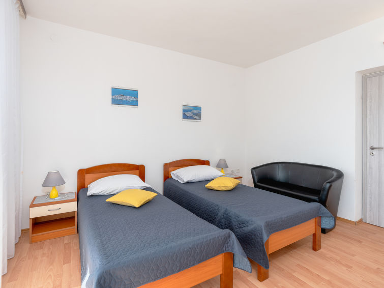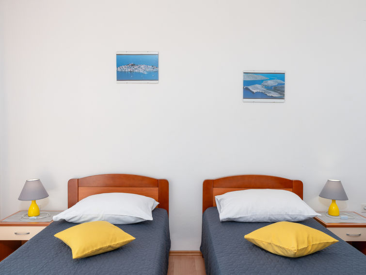 Fin, koselig flermannsbolig "Vesela". Utenfor området, 1 km fra sentrum av Vir, i en solrikt posisjon, 400 m fra sjøen, 400 m fra stranden, i det grønne. Fellesbruk: hage med planter og trær, frukthage, 1 badebasseng firkantet (10 x 6 m, dybde 150- 170 cm dyp, Sesongåpent: 04.Mai. - 14.Sep.) med innbygdetrapper. Utendørs dusj, sitteplass, hagemøbler, grill, lekeplass. I huset: internetilkobbling, trådløst LAN [WLAN]. Parkering ved hbrukt på tomten. Butikk 500 m, restaurant 1 km, stenstrand 400 m. Vennligst merk: Det er flere lignende leiligheter i samme hus. Objektnummer HR4050.123, 131 ligger på samme tomt. Shared bowling pitch.