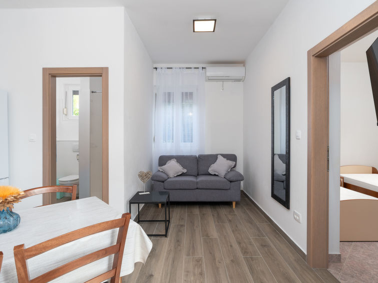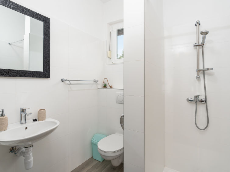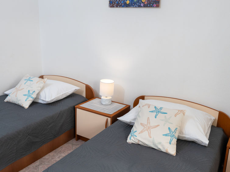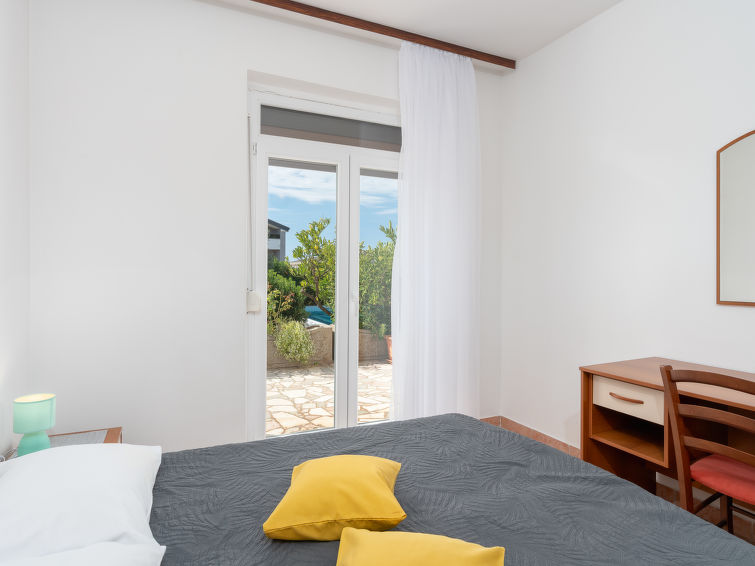 Fin, koselig flermannsbolig "Vesela". Utenfor området, 1 km fra sentrum av Vir, i en solrikt posisjon, 400 m fra sjøen, 400 m fra stranden, i det grønne. Fellesbruk: hage med planter og trær, frukthage, 1 badebasseng firkantet (10 x 6 m, dybde 150- 170 cm dyp, Sesongåpent: 04.Mai. - 14.Sep.) med innbygdetrapper. Utendørs dusj, sitteplass, hagemøbler, grill, lekeplass. I huset: internetilkobbling, trådløst LAN [WLAN]. Parkering ved hbrukt på tomten. Butikk 500 m, restaurant 1 km, stenstrand 400 m. Vennligst merk: Det er flere lignende leiligheter i samme hus. Objektnummer HR4050.123, 131 ligger på samme tomt. Shared bowling pitch.