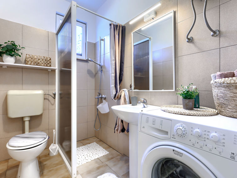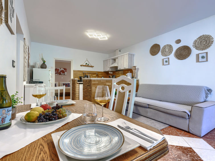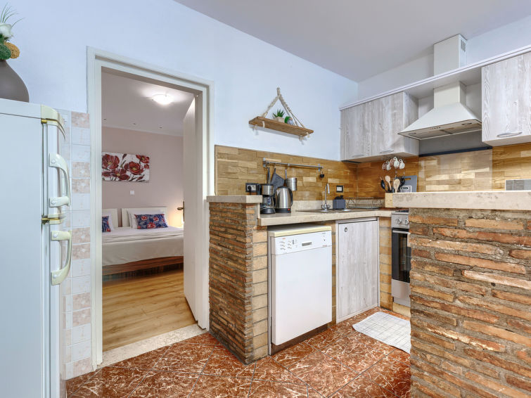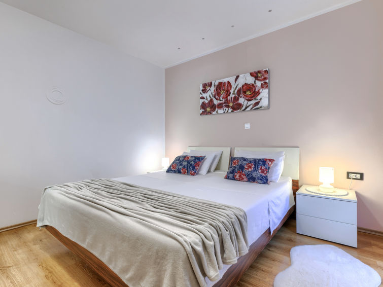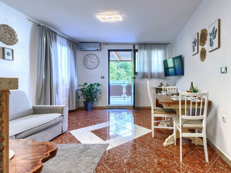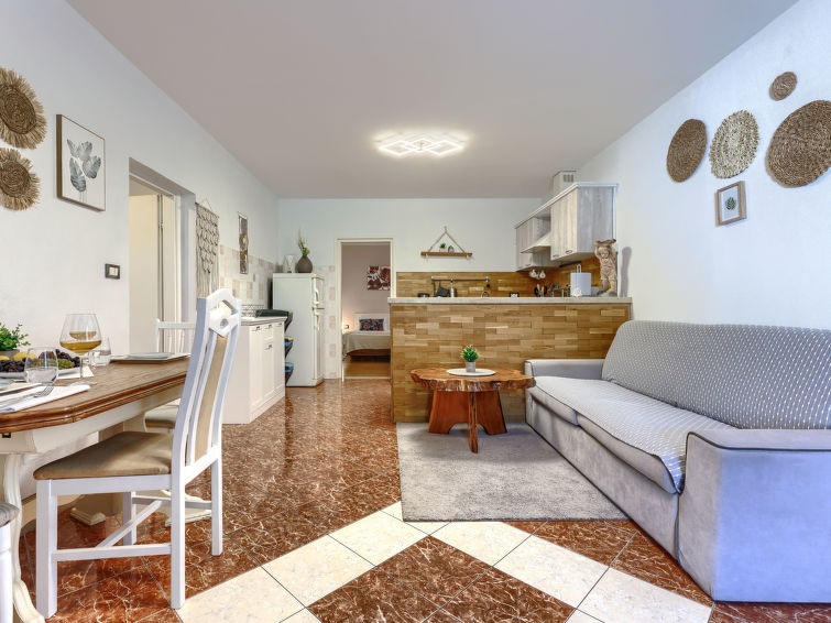 "Viliam (ROJ530)", 2 rom leilighet 50 m2, nederste etasje. Stue/soverom med, 1 sovesoffa, spisebord, satelit-TV, el-radiator og air-conditioning. Utgang til terrassen. 1 dobblet rom. Utgang til terrassen. Åpent kjøkken (1 kokeplate, stekeovn, oppvaskmaskin, 3 gassbrennere, brødrister, vannkoker, mikrobølgeovn, frys, elektrisk kaffemaskin). Dusj/WC. Terrasse 30 m2 delvis dekt. Terrassemøbler, grill (flyttbar). Fasiliteter: vaskemaskin. Internett (trådløs LAN [WLAN], gratis). Vennligst merk: røykfri bolig. Max kjæledyr / hund tillatt 1 kjæledyr / hund tillatt.