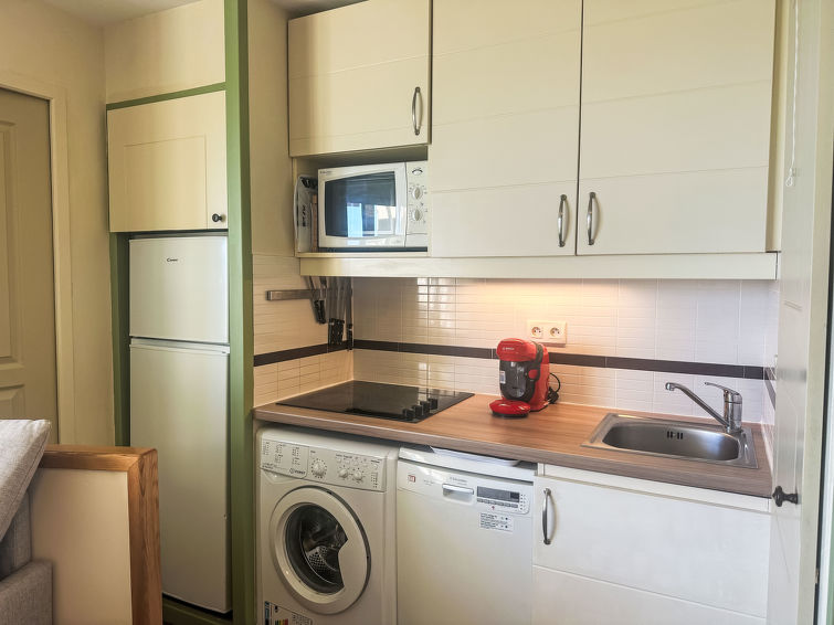 "L'Esquinade (FH206)", 2 rom leilighet 28 m2 i 1st etasje. Stue med, 1 uttrekkbar seng (2 x 80 cm, lengde 190 cm), TV (flatskjerms TV). Utgang til terrassen. 1 rom med, 1 dobbeltseng (140 cm, lengde 190 cm), TV (flatskjerms TV). Kjøkkenkrok (4 kokeplater, oppvaskmaskin, brødrister, vannkoker, mikrobølgeovn, frys, elektrisk kaffemaskin, Internet(TASSIMO), ekstra). Bad, sep. WC. Airconditioning. Terrasse 10 m2. Terrassemøbler. Panoramautsikt av havet, svømmebassenget og Golfbane. Fasiliteter: vaskemaskin. Internett (trådløs LAN [WLAN], ekstra). Parkeringsplass plass nr 2438 (overdekt, 1 Bil), høyde 180 cm. Vennligst merk: røykfri bolig. Røykvarsler. Tilbud fra en privatperson i henhold til art. 155, IV av CGI.
