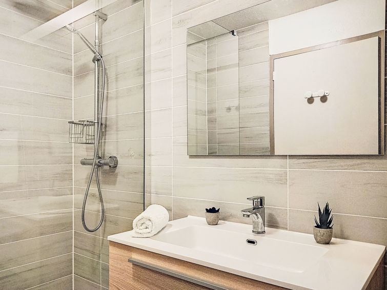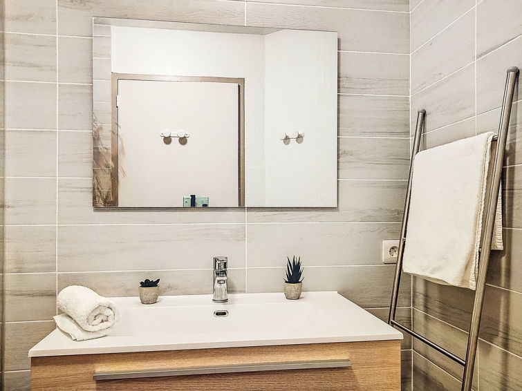 2 rom leilighet 40 m2, på bakkeplan. Stue/spisestue med, 1 dobbel sovesoffa (140 cm, lengde 190 cm), TV, flatskjerms TV og CD-spiller. Utgang til terrassen. 1 rom med 2 senger (90 cm). Kjøkkenkrok (miniovn, stekeovn, oppvaskmaskin, 2 keramiske kokeplater, brødrister, mikrobølgeovn, elektrisk kaffemaskin). Bad, sep. WC. El-oppvarming. Terrasse 6 m2, dekt. Terrassemøbler. Fasiliteter: strykejern, hårføner. Internett (trådløs LAN [WLAN], ekstra). Vennligst merk: røykfri bolig. Røykvarsler.
