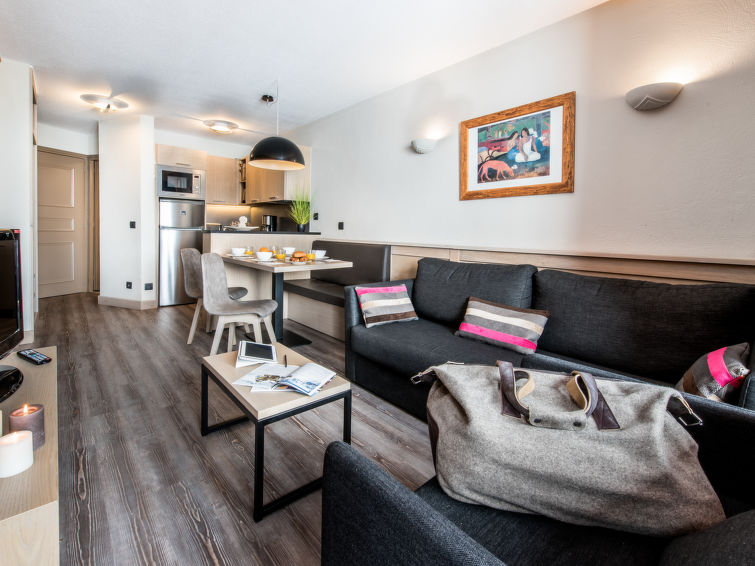 "Village Montana (VTH211)", 2 rom leilighet 35 m2. Rustikt og træ møblement møbler: stue med, spisebord og satelit-TV. 1 rom med 2 senger. Sovealkove med etasjer med 2 senger. Kjøkkenkrok (2 kokeplater, stekeovn, oppvaskmaskin, brødrister, vannkoker, mikrobølgeovn, elektrisk kaffemaskin). Bad, sep. WC. Oppvarming. Balkong. Vakker utsikt av fjellene. Fasiliteter: safe. Internett (trådløs LAN [WLAN], gratis). I stedet for et separat soverom er de enkelte soveplassene plassert i et åpent område (hems, alkove osv.).