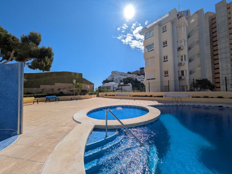 Stor leilighetshus "Vistamar", med 15 etasjer. I området 4 km fra sentrum av Benidorm, i distriktet Playa Poniente-Cala Finestrat, i en roligt, solrikt posisjon ved en høyde, 300 m fra sjøen, 300 m fra stranden, beliggenhet mot øst. Fellesbruk: tomt (inngjerdet), 1 badebasseng (10 x 7 m, dybde 140- 170 cm dyp, Sesongåpent: 01.Jan. - 31.Des.). Barnebasseng, utendørs dusj. I huset: heis. Offentlig parkering på veien. Supermarked 400 m, restaurant, bar 200 m, bussholdeplass "Benidorm" 300 m. Golfbane(18 hull) 5 km, turstier fra hbrukt 200 m. Attraksjoner i nærheten: Terra Mitica 3 km, Terra Natura 3 km, Mundomar 10 km, Aqualandia 10 km, Alicante 43 km, Aeropuerto Alicante 56 km. Vennligst merk: babyutstyr på forespørsel.