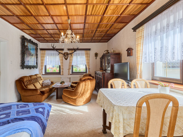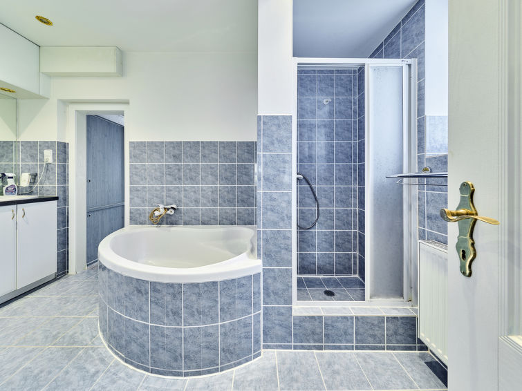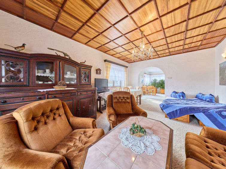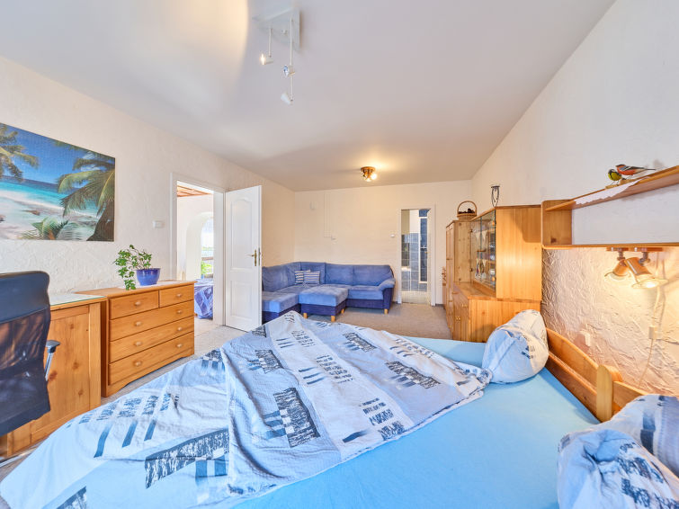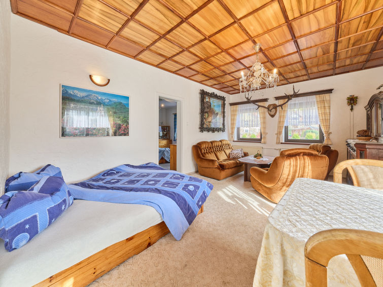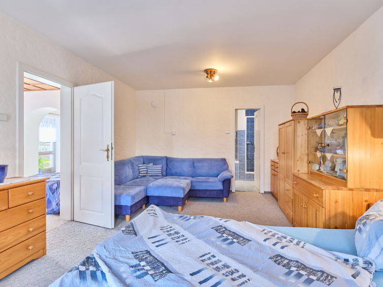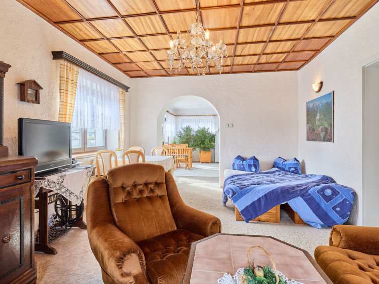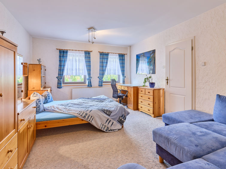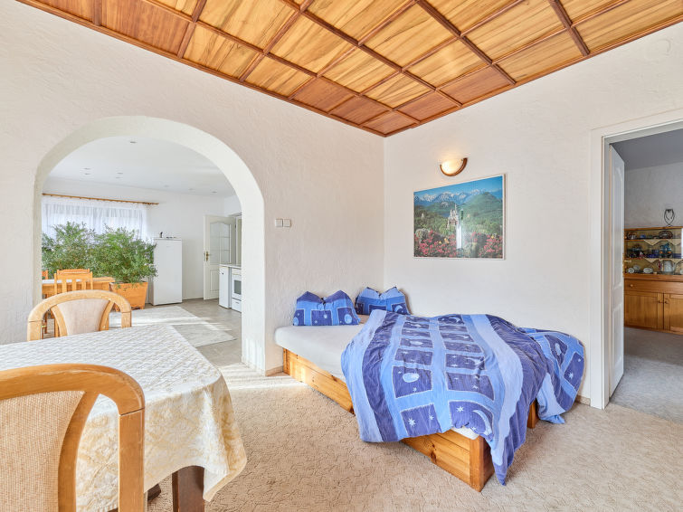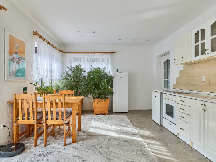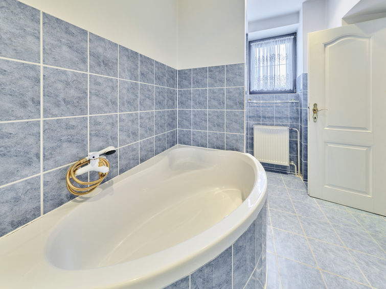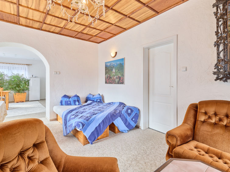 2 rom leilighet 55 m2, på bakkeplan. Komfortabelt og koseligt møbler: stue/soverom 12 m2 med, 1 sovesoffa, 1 dobbeltseng, spisebord og satelit-TV. Utgang til hagen, til terrassen. 12 m2, 1 rom med, 1 sovesoffa og 1 dobbeltseng. Kjøkkenkrok 20 m2 (stekeovn, oppvaskmaskin, 4 keramiske kokeplater, vannkoker, mikrobølgeovn) med, spisebord. Bad/dusj, sep. WC. Gassoppvarming. Utsikt av elven. Fasiliteter: Internett (trådløs LAN [WLAN], gratis). Vennligst merk: velegnet for familier. Egen inngang.