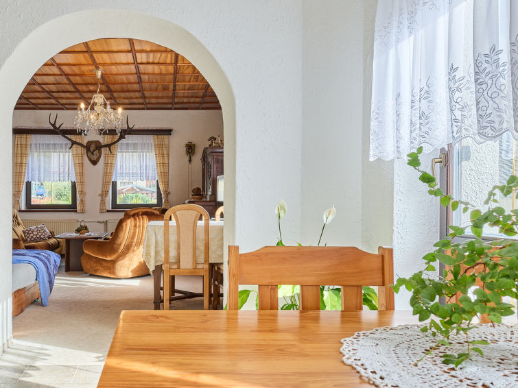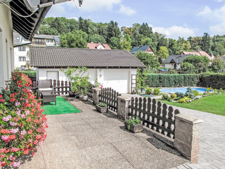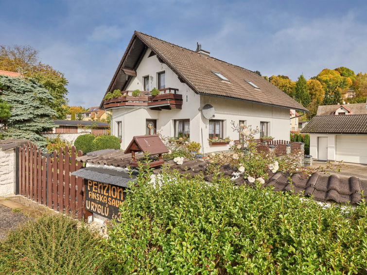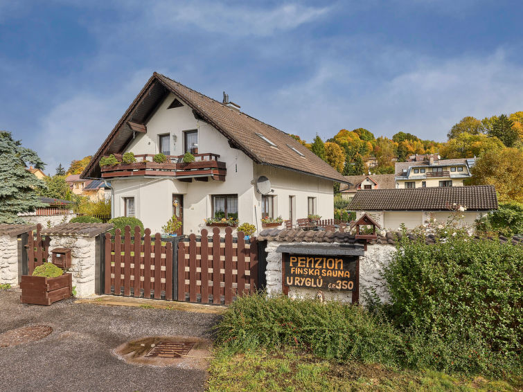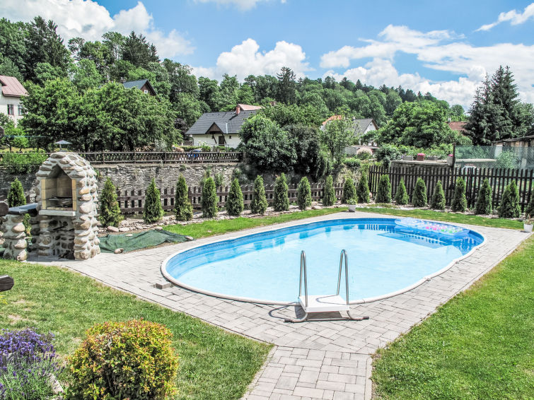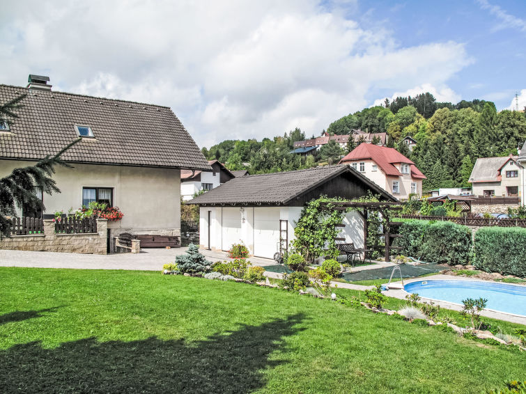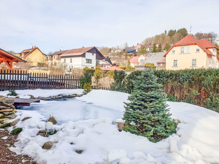 Koselig tomannsbolig "Vrchlabí", med 2 etasjer. I en roligt posisjon, 10 m fra elven, i en blindvei. Privat: hage m2 400 ha, svømmebasseng oppvarmt (9 x 3 m, dybde 120 cm, Sesongåpent: 15.Jun. - 15.Sep.). Terrasse, hagemøbler, grill. I huset: badstu (ekstra). Massasje (ekstra). Parkering ved hbrukt. Butikk 200 m, daglivarehandel 100 m, supermarked, restaurant, bussholdeplass 200 m, togstasjon 1 km, utendørs svømmebasseng 3 km, innendørs pool 14 km. Golfbane 16 km, tennis 3 km, fjellheis 1 km, skiheis 1 km, skiskole 1 km, akebane 14 km, langrensløype 3 km, lekeplass 300 m. Vennligst merk: eieren bor i samme hus. Eieren har hund.