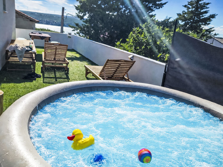 3 rom leilighet 55 m2 i 1st etasje. Vakkert møbler: stue/spisestue 35 m2 med, TV (flatskjerms TV), radiator og air-conditioning. 1 rom med, 1 dobbeltseng (160 cm, lengde 200 cm). 1 rom med 2 senger (90 cm lengde 200 cm). Åpent kjøkken (stekeovn, 4 induksjonskomfyr, brødrister, vannkoker, mikrobølgeovn, frys, elektrisk kaffemaskin). Dusj/WC. El-oppvarming, vedoppvarming varmluftsoppvarming. Terrasse 80 m2. Terrassemøbler, liggestoler. Delvis god utsikt av havet. Fasiliteter: vaskemaskin, hårføner. Internett (trådløs LAN [WLAN], gratis).