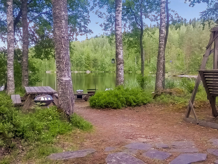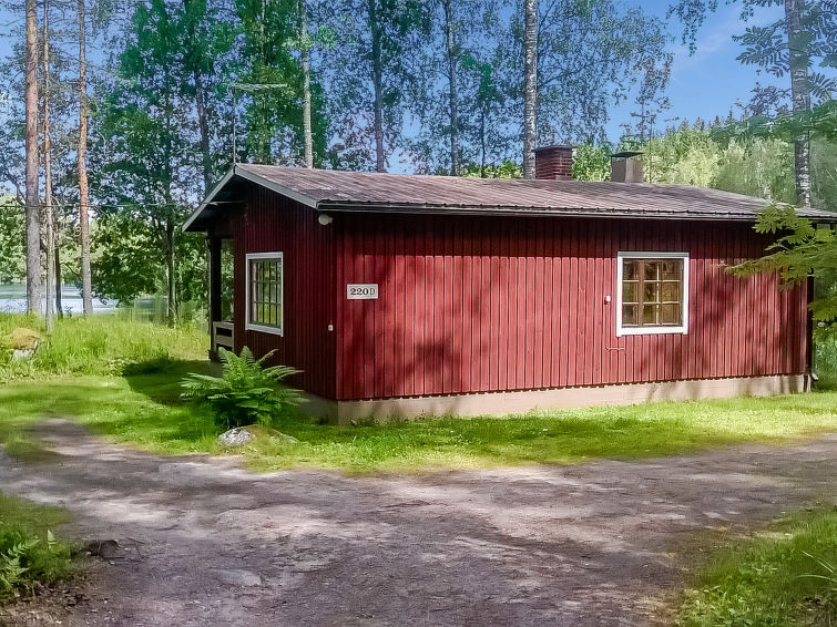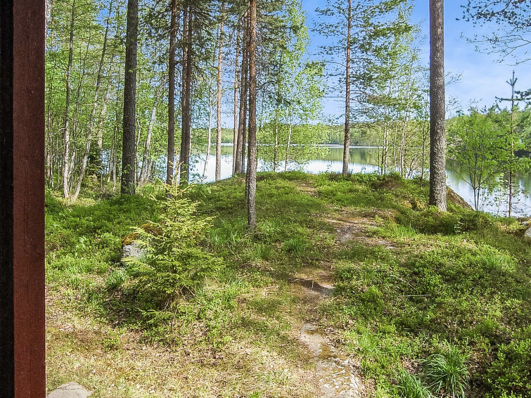 64 km north of Savonlinna. Lake Ruokojärvi 10 m (length 7 km, breadth 1 km), shallow water, sandy bottom. Pier, own boat at lake Ruokojärvi. Lean -to at lake Saimaa, distance 2.5 km. Lake Saimaa 2.5 km. At lake Saimaa own rowing boat (+ outboard motor for hire). Note! Motor boat in the picture is not for rent or in use.
