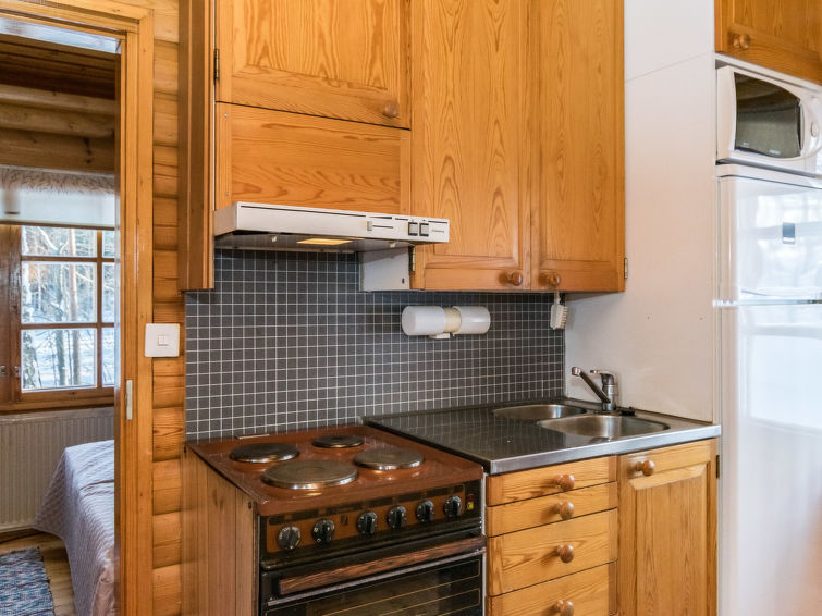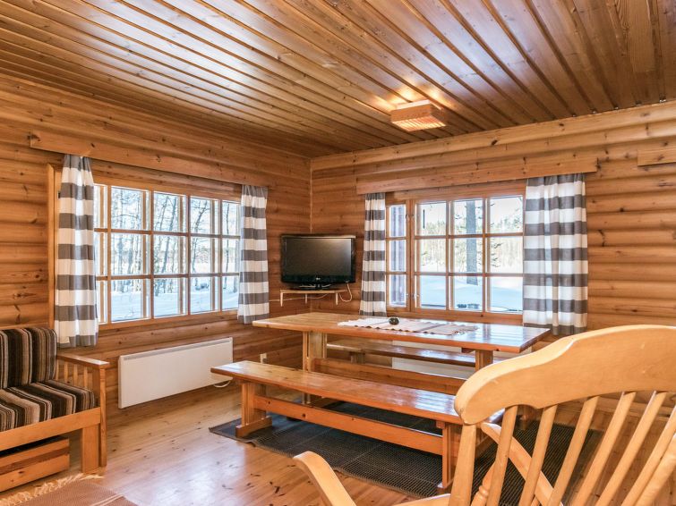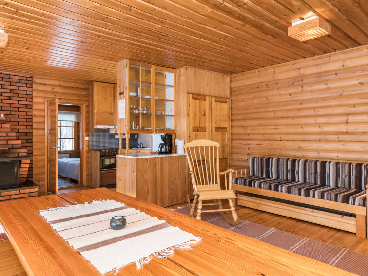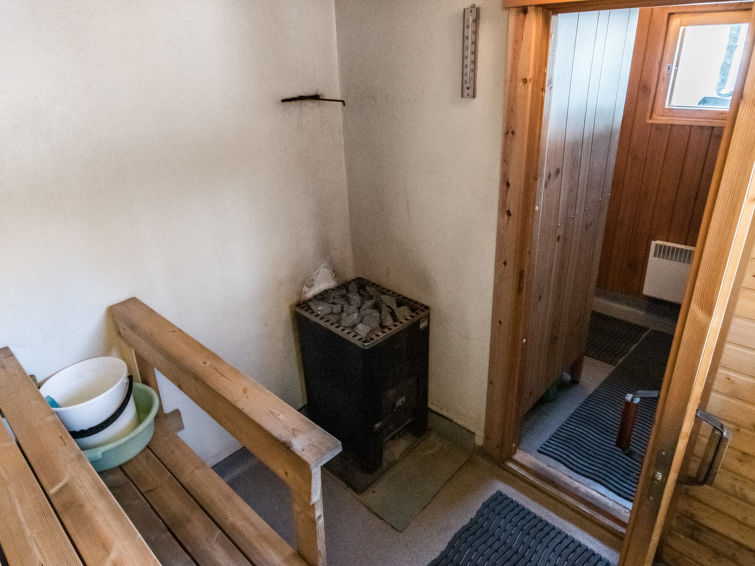 Wooden cabin, renovated 1992, kitchen, bedroom with 2 beds , living room with 2 extra beds (couch), sauna (electric sauna stove), dressing room, open veranda. Drinking water will be feched from owner, distance 400 m.