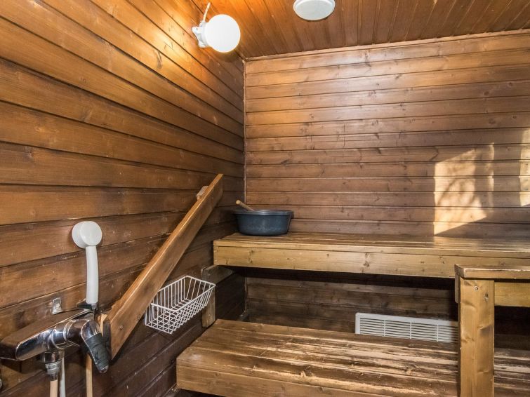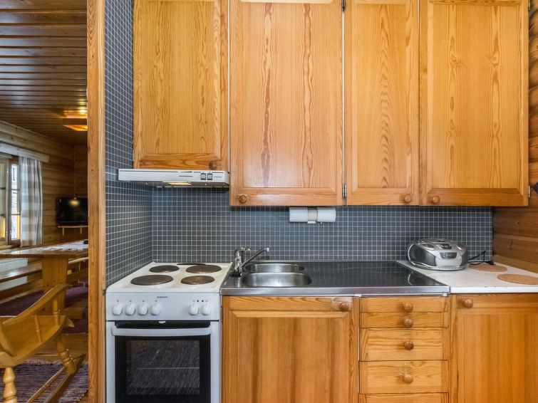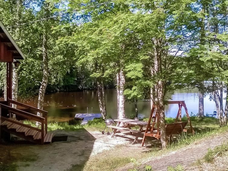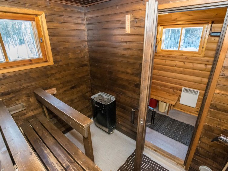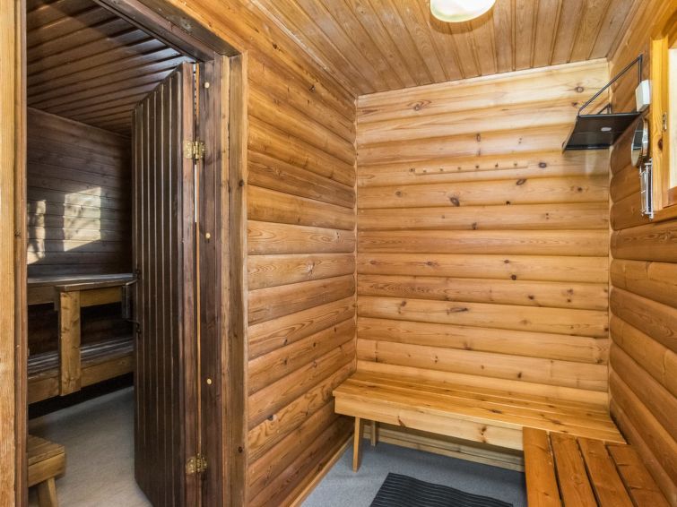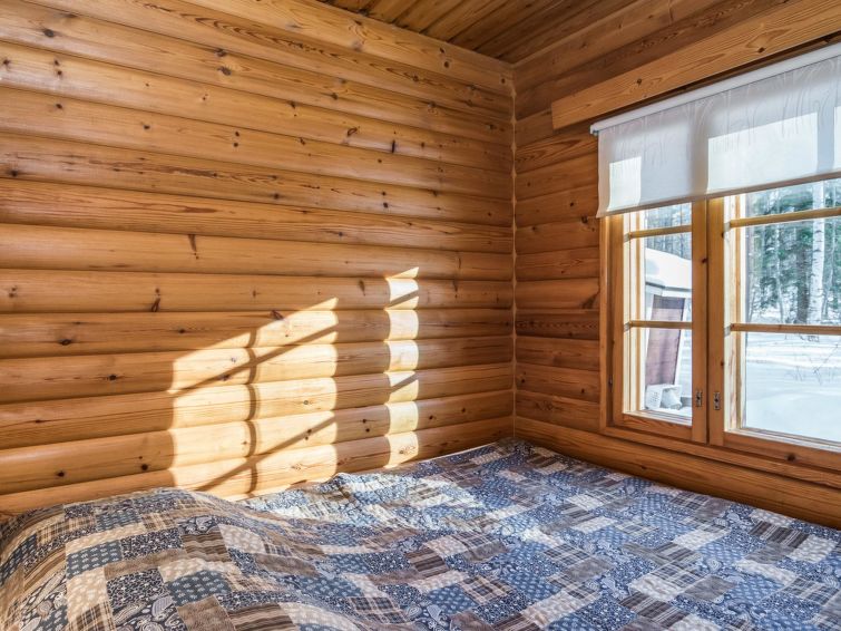 Wooden cabin, renovated 1992, kitchenette, 2 bedrooms with 2 beds in each, living room with 2 extra beds (couch), sauna (electric sauna stove), dressing room, open veranda. Drinking water will be fetched from owner.