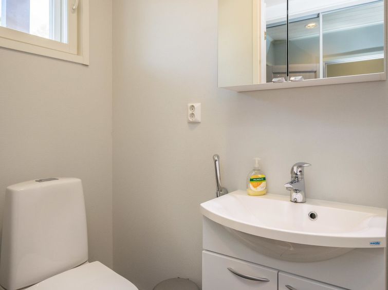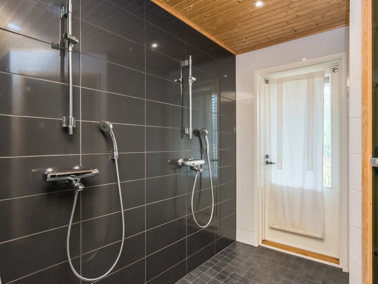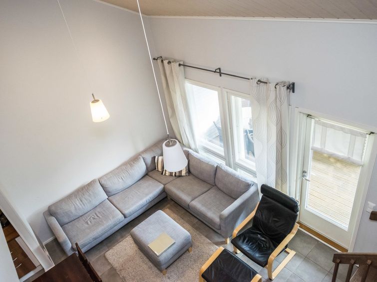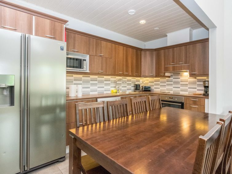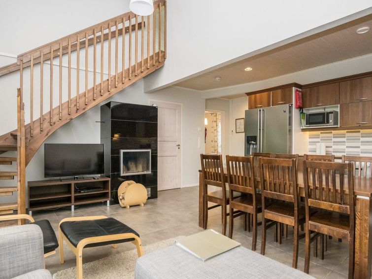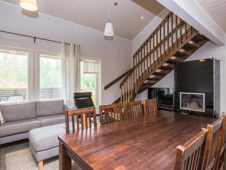 This luxury semi-detached house was completed in March 2013. Located near the Vuokatti skislopes. Floor area 97m². On the ground floor there is living room, kitchen, 2 bedrooms (other with double bed and other with 2 beds), sauna (electric heating), washroom / hydro massage bath, toilet and separate toilet. Upstairs: 2 bedrooms (other with double bed and other with 2 beds) and toilet. Terrace. Internet connection (wireless 1Mb).