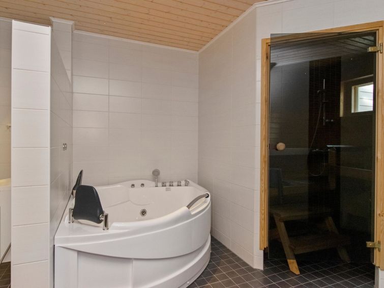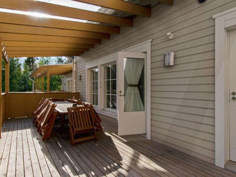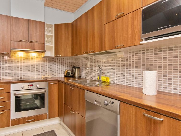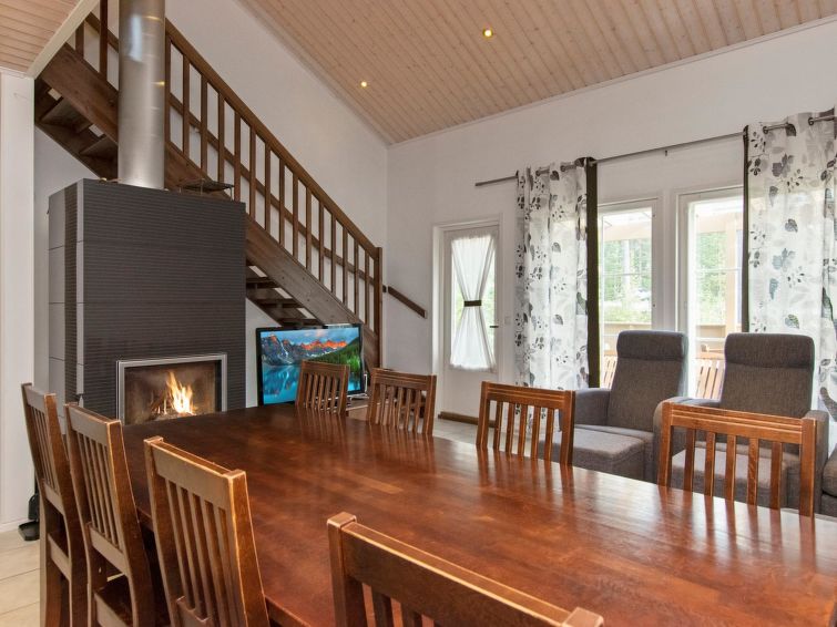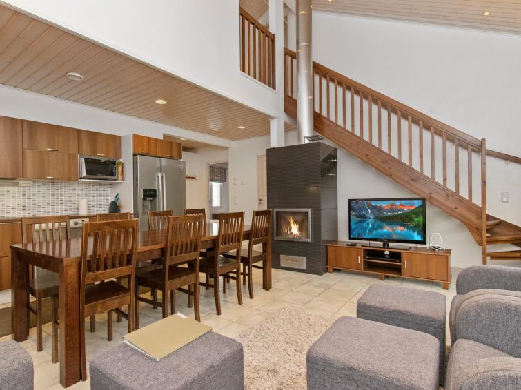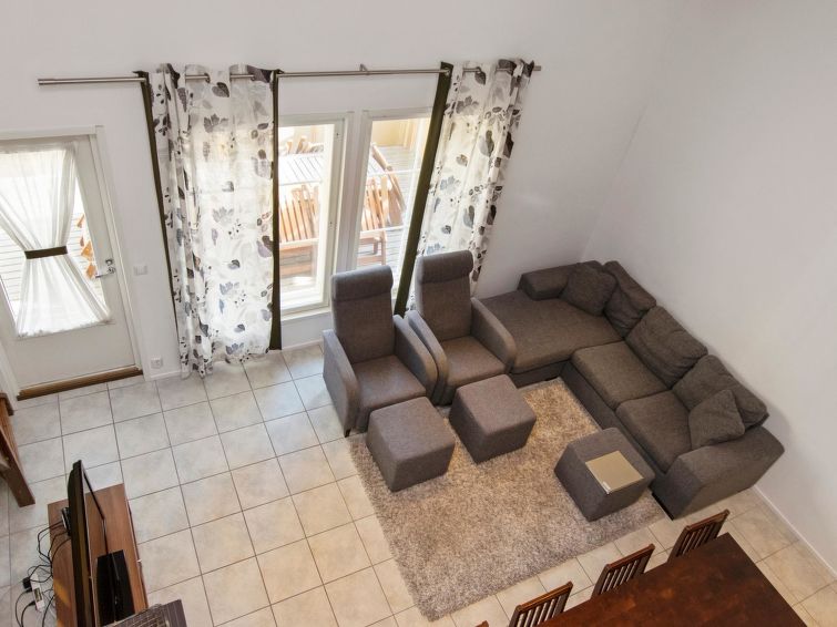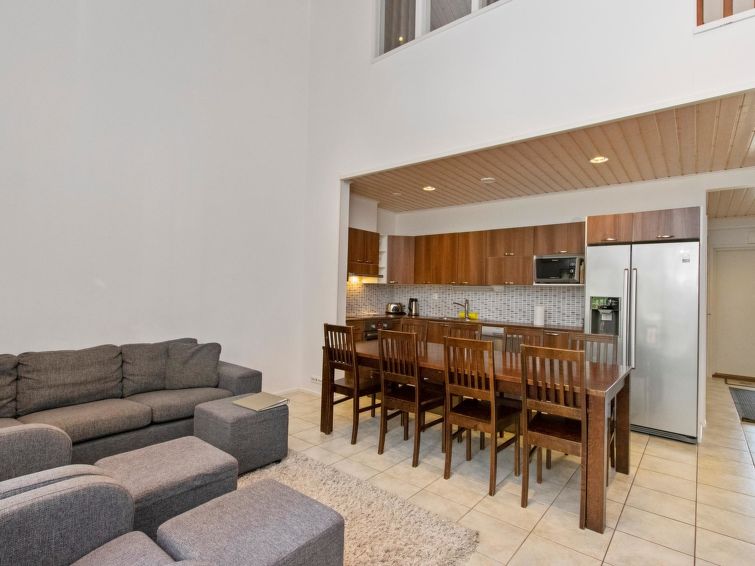 This row house apartment was completed in December 2010. Located near the Vuokatti skislopes. Floor area 110 m². On the ground floor there is living room, kitchen, 2 bedrooms, sauna (electric heating), washroom, hydro massage bath, toilet, household room with toilet. Upstairs; 2 bedrooms, loft, toilet, shower. Terrace. Dvd/Blyray player. Equipment for a baby: travel bed and canvas chair. Kajaani 35 km, Sotkamo 7 km, Katinkulta Spa 2,5 km. Check in at 4 pm on arrival day and check out at 12 am on departure day, also in case of a weekend stay. No pets allowed.