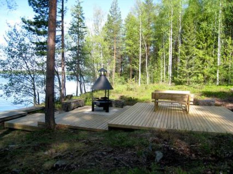 Log cabin 1995, kitchen and living room, 2 bedrooms with 2 beds in each, sleeping loft with 3 beds. Washroom, sauna, open veranda.