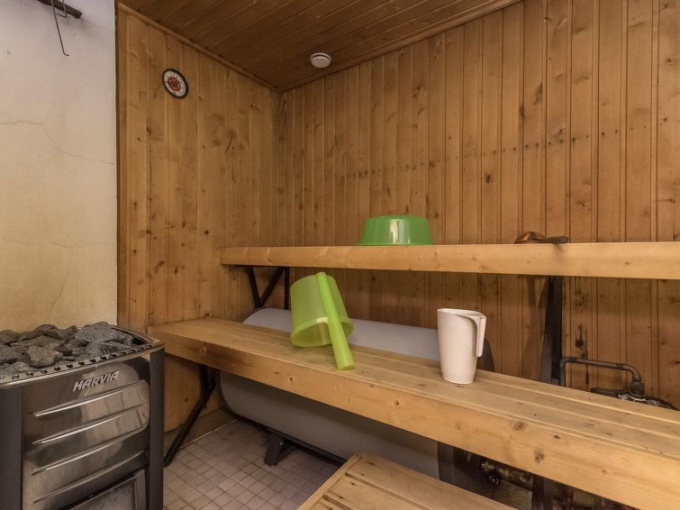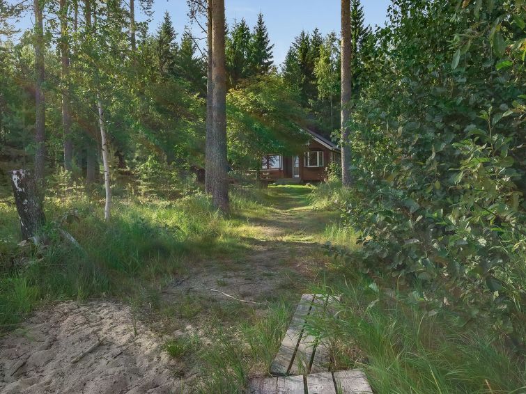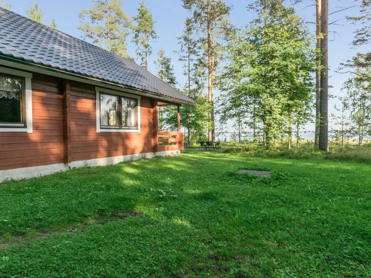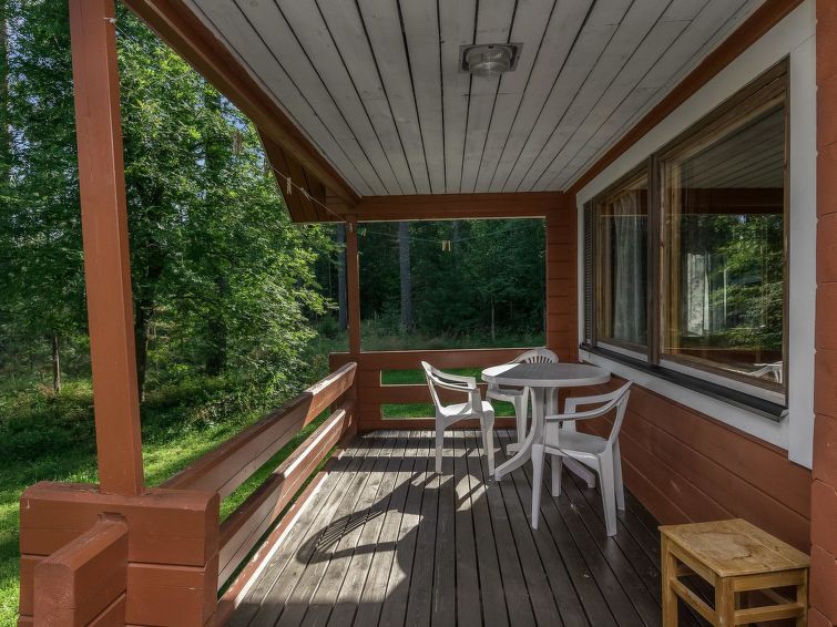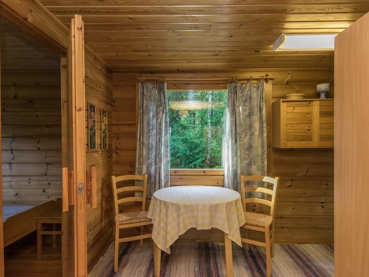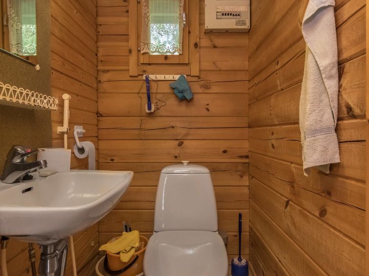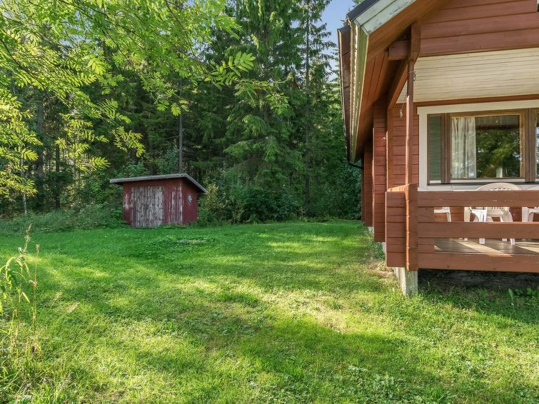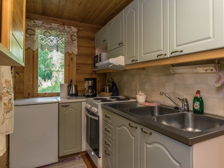 Log cabin 1993, kitchen, living room, bedroom with 2 beds, sleeping loft (steep stairs) with 4 beds, washroom, sauna, toilet, veranda, balcony. Basic equipped peaceful rental cottage on a grass plot.
