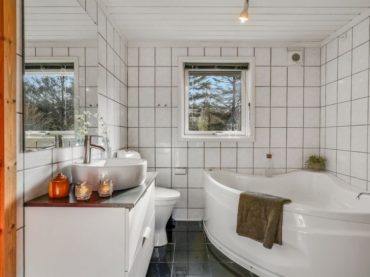 "Aage" - 1.7km from the sea in NW Jutland", 4 rom hus 101 m2. Passer for 8 voksne. Stue med, TV, radio og CD-spiller. 1 rom med, 1 dobbeltseng. 1 rom med, 1 dobbeltseng. 1 rom med 1 seng. 1 rom med, 1 dobbeltseng. Kjøkken (stekeovn, oppvaskmaskin, 4 induksjonskomfyr, mikrobølgeovn, frys). 2 dusjer/WC. Terrasse 6 m2, dekt. Fasiliteter: barneseng (ekstra). Internett (trådløs LAN [WLAN]). Vennligst merk: røykfri bolig.