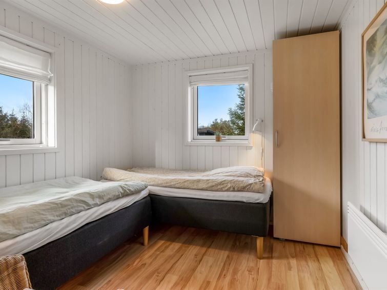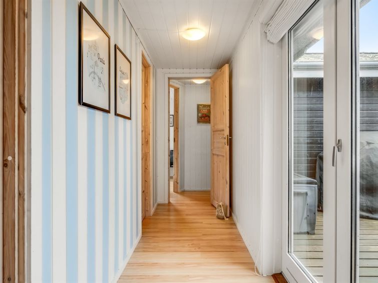 Blokhus: Enmannsbolig, bygget i 1966. 1.7 km fra sjøen. Privat: uberørt tomt 2'500 m2. Terrasse (90 m2), lekeplass (huske). I huset: badstu, vaskemaskin. Daglivarehandel 1.1 km. Eieren godtar ikke noen ungdomsgrupper.