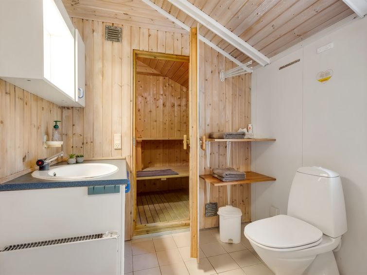 "Aamu" - 300m to the inlet in Western Jutland", 3 rom hus 107 m2. Passer for 6 voksne. Stue med, TV, radio, CD-spiller og stereoanlegg. 1 rom med, 1 dobbeltseng. 1 rom med 2 senger. 1 rom med 2 senger. Kjøkken (stekeovn, oppvaskmaskin, 4 induksjonskomfyr). Dusj/WC, boblebad. Fasiliteter: Internett (trådløs LAN [WLAN]). Vennligst merk: røykfri bolig.