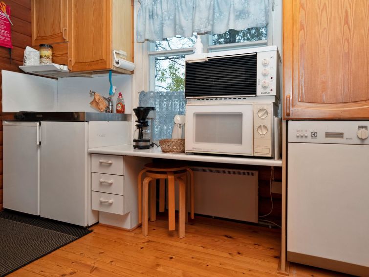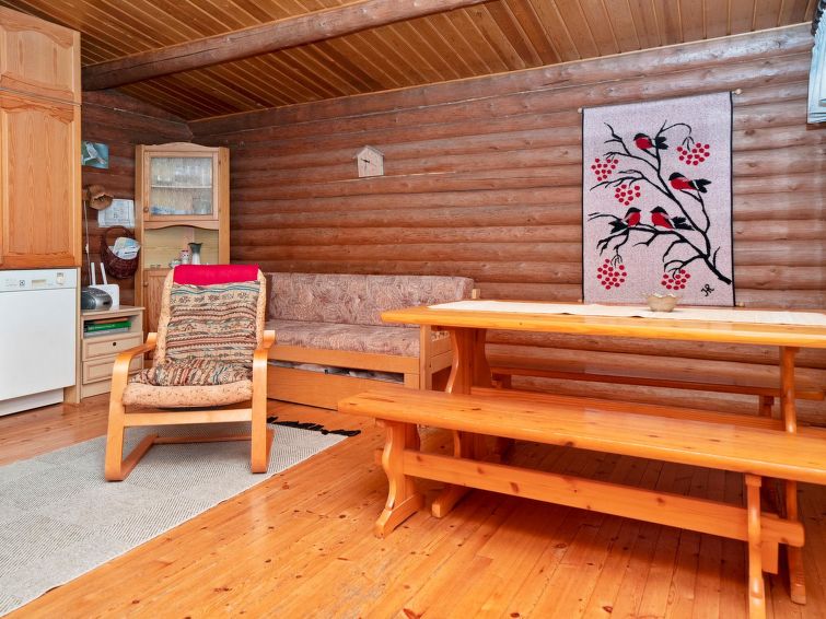 Log cottage, built in 1992, sleeping alcove: double bed, living room: convertible sofa, combined kitchen/living room, electric sauna.