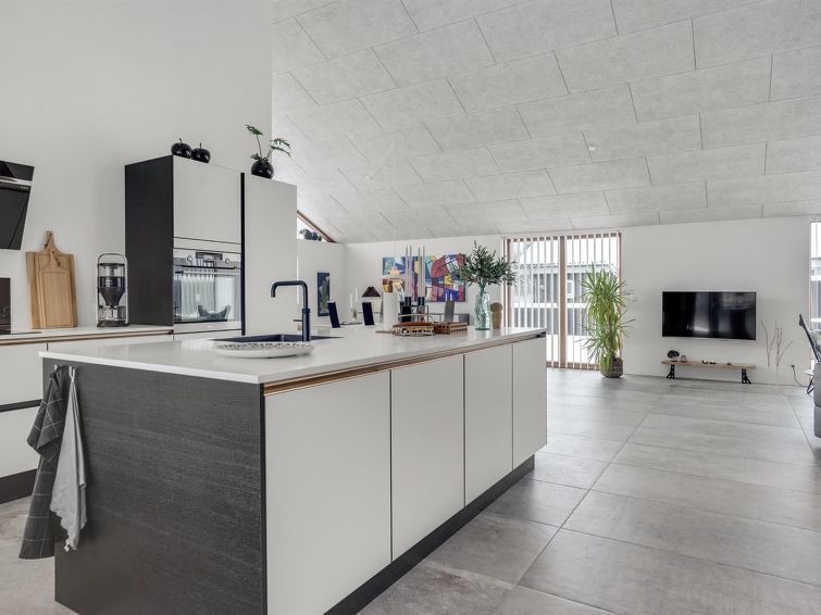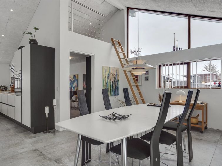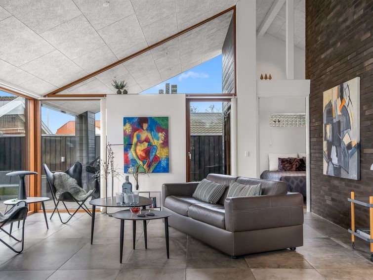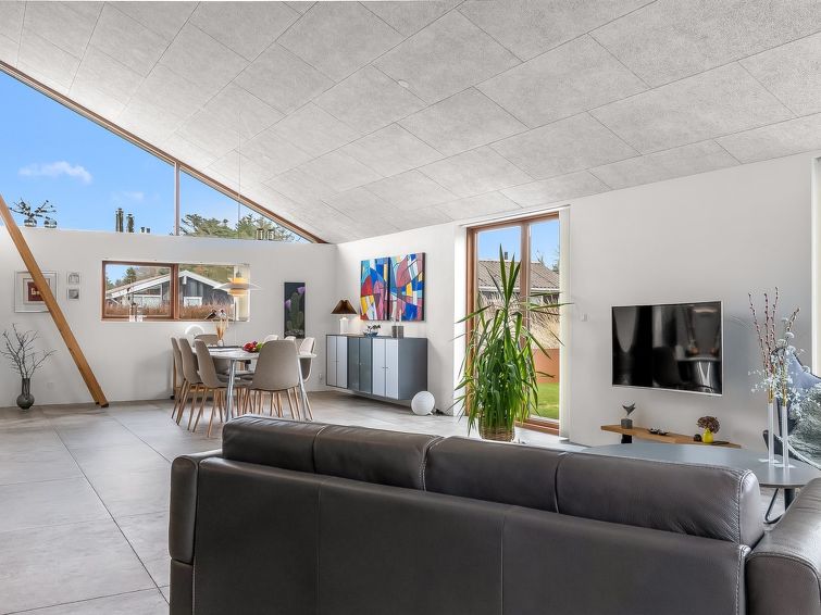 "Aaran" - 700m from the sea in NW Jutland", 3 rom hus 120 m2. Passer for 8 voksne. Stue med, 1 dobbel sovesoffa og TV. 1 rom med, 2 sovesoffaer. Åpen galleri, 1 rom med 2 senger og 2 sovemuligheter. Kjøkken (stekeovn, oppvaskmaskin, 4 induksjonskomfyr, mikrobølgeovn, frys). 2 dusjer/WC. Terrasse 18 m2, dekt. Fasiliteter: Internett (trådløs LAN [WLAN]). Vennligst merk: røykfri bolig. Max kjæledyr / hund tillatt 1 kjæledyr / hund tillatt.