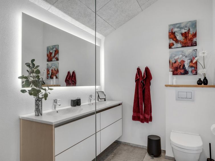 Enmannsbolig, bygget i 2019. 700 m fra sjøen. Privat: uberørt tomt 400 m2. Terrasse (45 m2), grill. I huset: vaskemaskin, tørketrommel. Parkering ved hbrukt. Daglivarehandel 600 m. Golfbane 5 km. Eieren godtar ikke noen ungdomsgrupper.