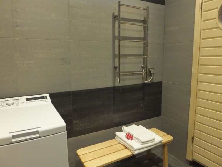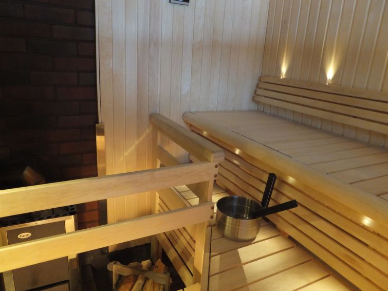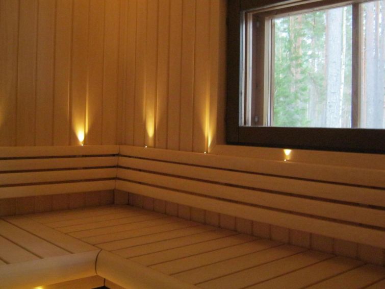 The cottage has spacious and comfortable living area, combined with a modern fitted kitchen. The lounge has fireplace, sofa set, dining set and dresser. The bedrooms have storage space for clothes and belongings. Big and bright sauna has wood stove and lake views. From dressing room there is door to spacious veranda with wooden furnishings.
