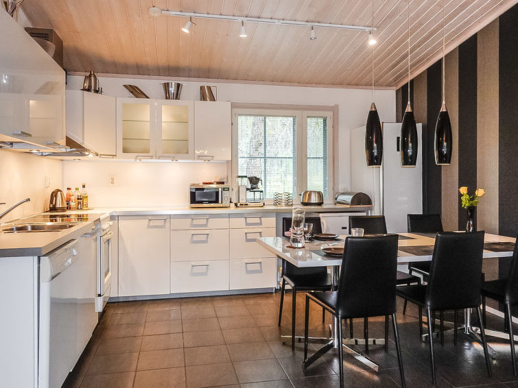 Good storage in bedrooms and modern sauna department. Terrace on the south side. The villa is also suitable for small events.