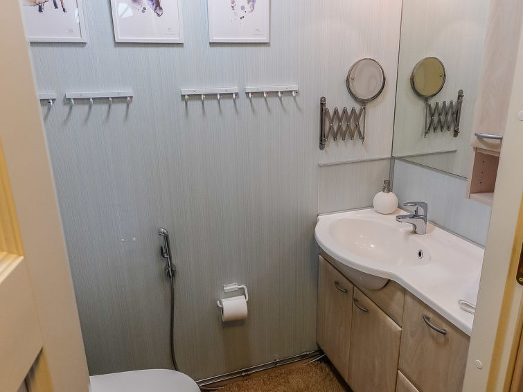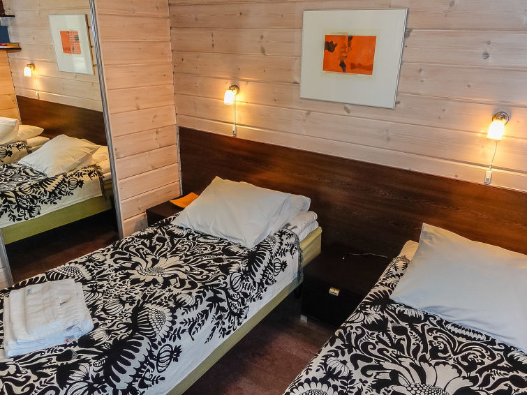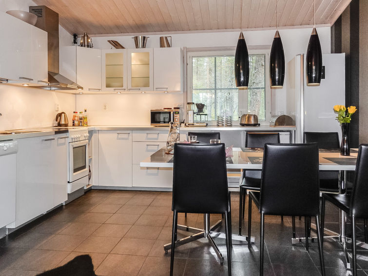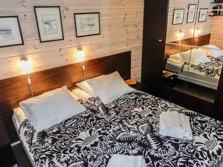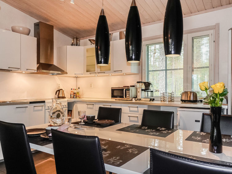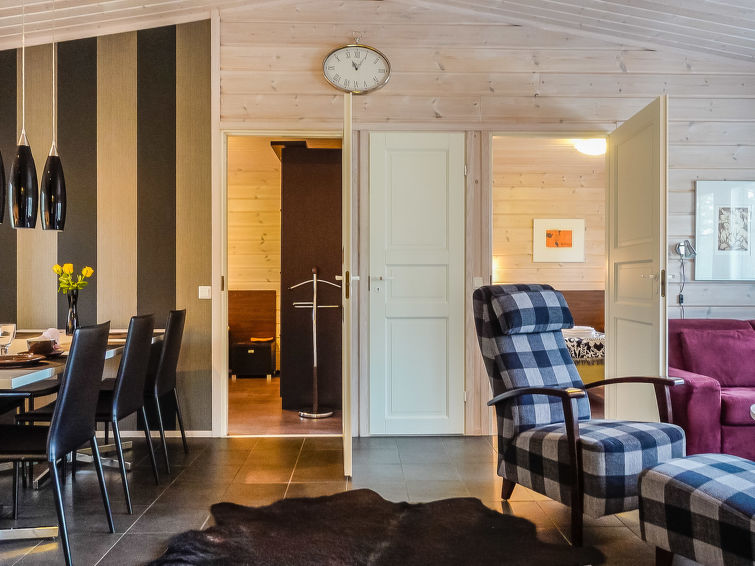 Log villa, built in 2009, living room-kitchen with sofa bed, 2 bedrooms, both with 2 beds, sauna, washroom, utility room, separate toilet and covered terrace. Garage. Internet (Wi-Fi, 4G). Aarrekammi is a tastefully furnished and elegantly furnished villa, dishes for 12 people, air source heat pump etc.