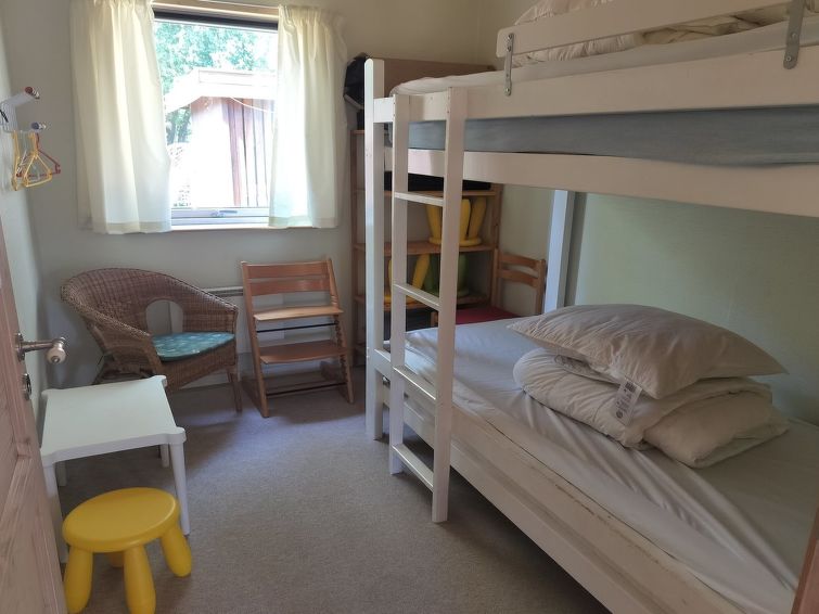 "Aase" - 950m from the sea in Lolland, Falster and Mon", 3 rom hus 79 m2. Passer for 4 voksne + 3 barn. Stue med, TV og radio. 1 rom med, 1 dobbeltseng. 1 rom med 2 senger. 1 rom med, 1 x 2 køysenger. Kjøkken (stekeovn, 4 keramiske kokeplater, mikrobølgeovn, frys). Dusj/WC. Fasiliteter: høy barnestol barneseng (ekstra). Internett (trådløs LAN [WLAN]). Vennligst merk: røykfri bolig.