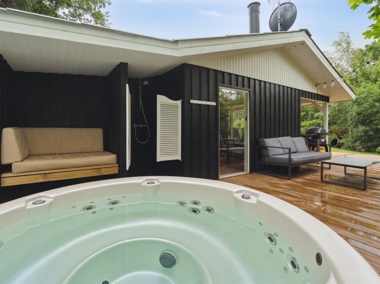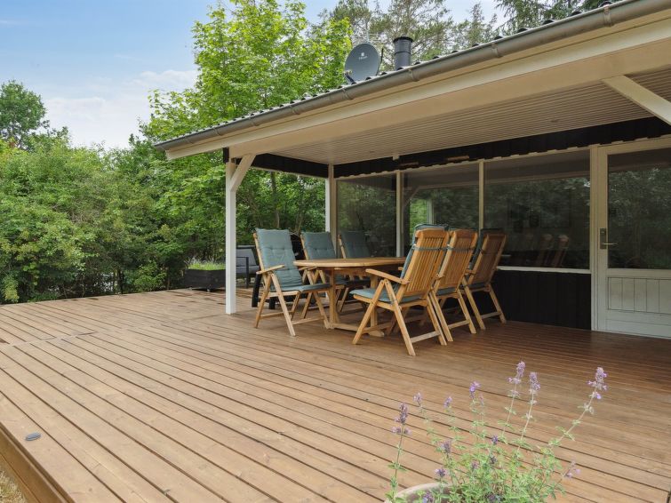 Enmannsbolig, bygget i 1979. 250 m fra sjøen. Privat: uberørt tomt 826 m2. Utendørs dusj, grill (rutsjebane), parkering ved hbrukt. Daglivarehandel 1.1 km. Golfbane 14.3 km. Eieren godtar ikke noen ungdomsgrupper.