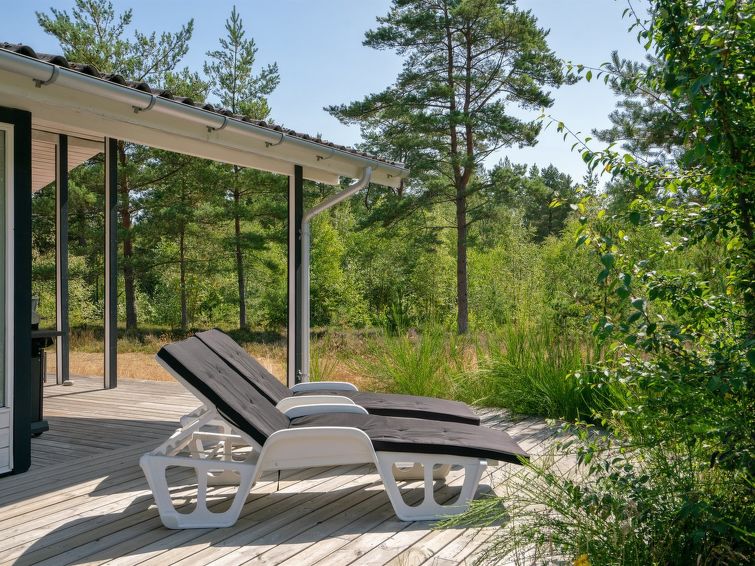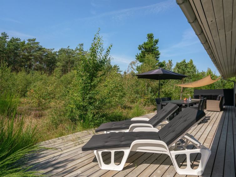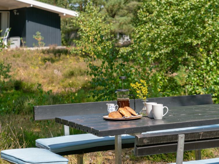 Enmannsbolig, bygget i 1973. 600 m fra sjøen. Privat: uberørt tomt 5'090 m2. Terrasse (70 m2), grill. I huset: vaskemaskin. Parkering ved hbrukt. Daglivarehandel 900 m. Golfbane 3.5 km. Eieren godtar ikke noen ungdomsgrupper.