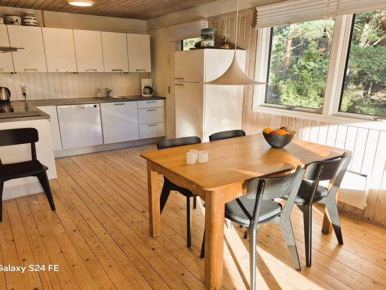 Enmannsbolig, bygget i 1973. 600 m fra sjøen. Privat: uberørt tomt 5'090 m2. Terrasse (70 m2), grill. I huset: vaskemaskin. Parkering ved hbrukt. Daglivarehandel 900 m. Golfbane 3.5 km. Eieren godtar ikke noen ungdomsgrupper.