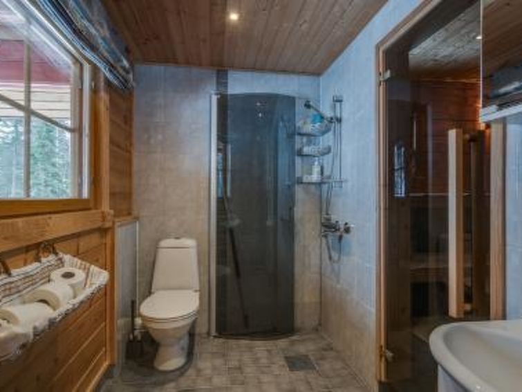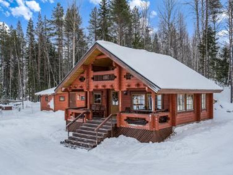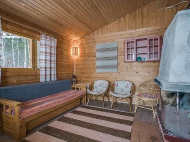Separate lakeshore sauna 36 m², distance 20 m, »steam room« (wood-burning stove, hot water tank on stove), room with fireplace 2 extra beds, open porch. Lakeshore sauna has electric light and water pipe in summer. Log chalet in quiet location on shore of large lake. Customers can also use a second boat on a wild river in the Martinselkonen wilderness area. Meal services, spoon trolling, hunting, berry and mushroom picking trips, and other programme packages can all be booked from the owner. Snowmobile available for rent through the owner. Ruhtinansalmi church 3 km, Kalmosärkät (prehistoric settlement) 5 km, Hossa fishing and hiking area 35 km, Martinselkonen protected area 5 km, bear watching and photographing location 10 km.