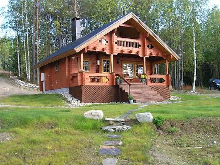 Log cottage (laminated log type) 2010, living room/kitchen, sleeping alcove (folding door) 2 beds, Upstairs/sleeping loft 2 beds and 2 mattresses, sauna (wood-burning stove), washroom, open porch, balcony.