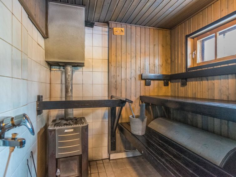 Log cabin 1991, kitchen, living room with 2 extra beds, bedroom with double bed , bedroom with bunk bed, dressing room, sauna and WC (entrance through veranda), open veranda. Rimpilän lomamökit