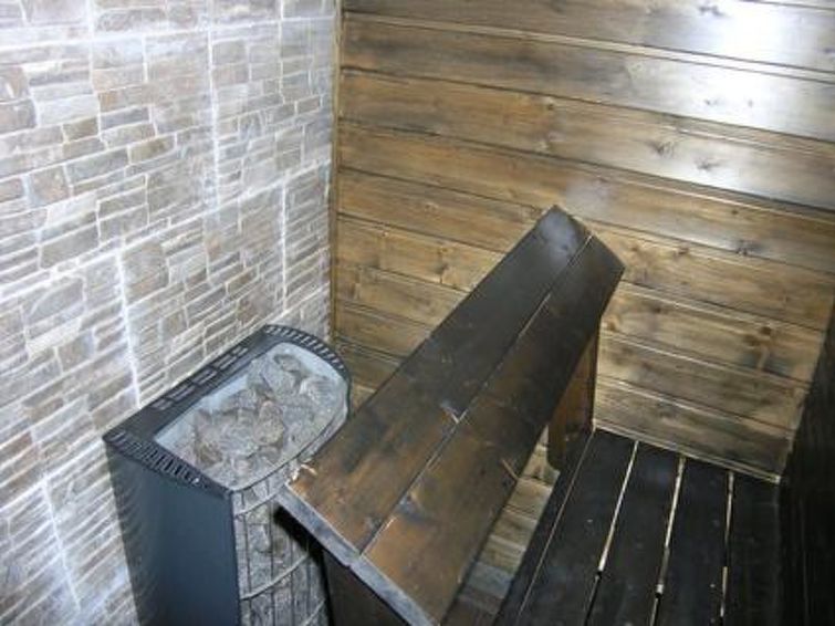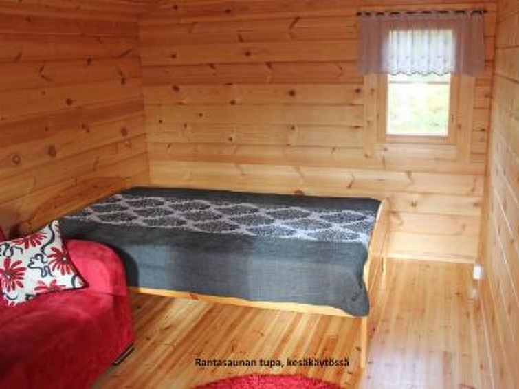Lakeside sauna 20 m away, sauna has steam room with wood stove, room with 2 single beds (use for accommodation only available during 1.4 - 30.9.), porch, electric light and -heating.