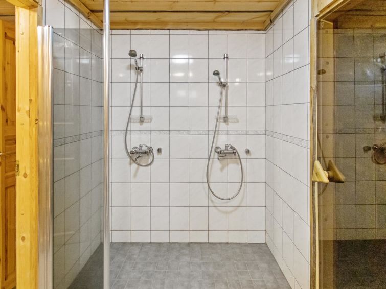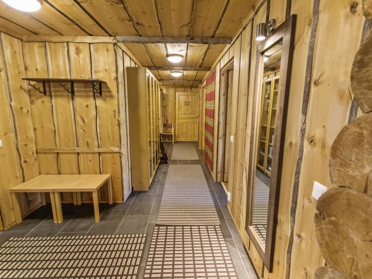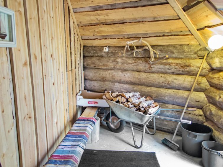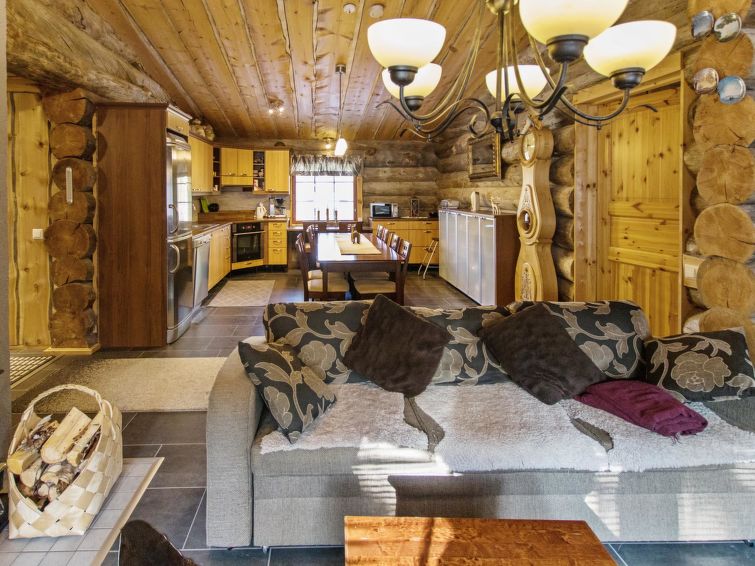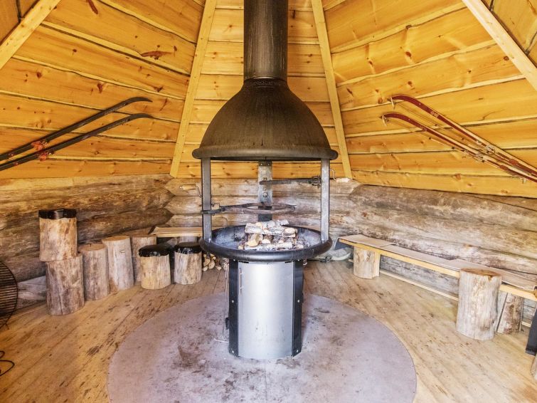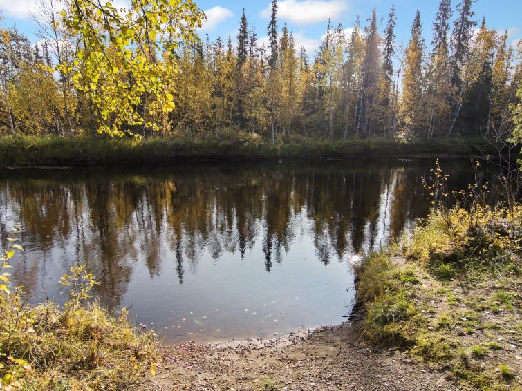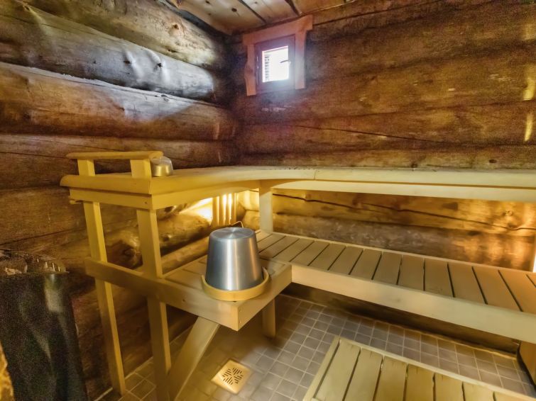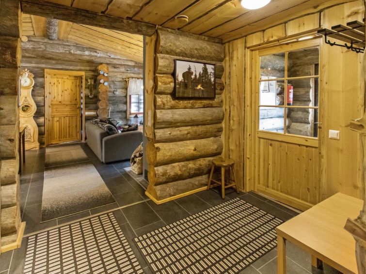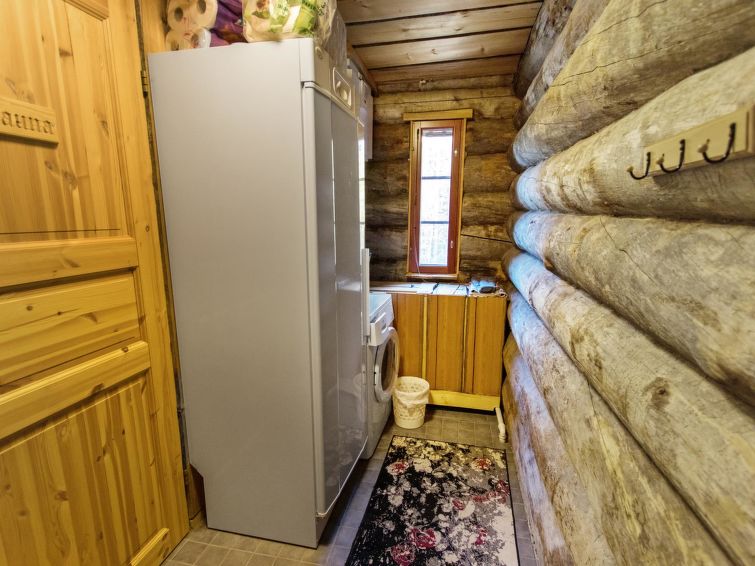 33 km north of Kolari. A log cabin, build 2012 close to the beach of Äkäsriver. Total 5 bedrooms. 3 bedrooms with two separate beds (width 80 cm )in each, one bedroom with 2 separate beds ( width 90 cm, a little bit higher beds than normal), one bedroom with double bed ( width 140 cm), kitchen/living room, two toilets, washroom, sauna (electric), fire Place, internet A cozy log cabin in a quiet location. Cottage is suitable for clients with physical disabilities. A kitchen hut. Also a sauna hut. To the Äkäsriver approx. 80 m. Pets are allowed. Extra fee for pets. Final cleaning is included in the price. Bed linen are available for rent. Reservations start at 16.00 and end at 10.00 (also in weekend bookings). During high season change day is Sunday.