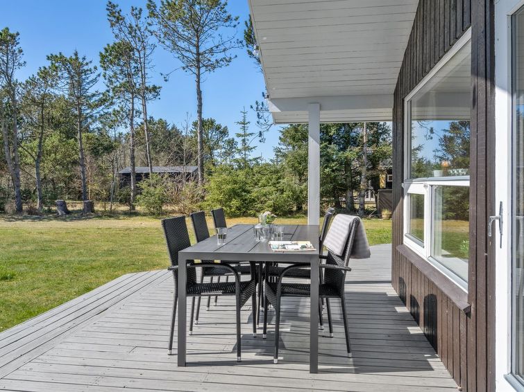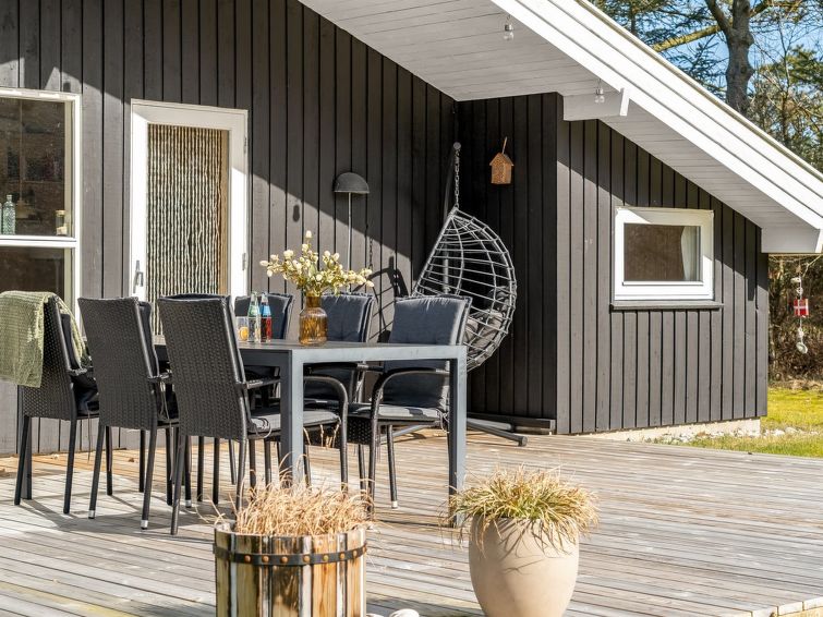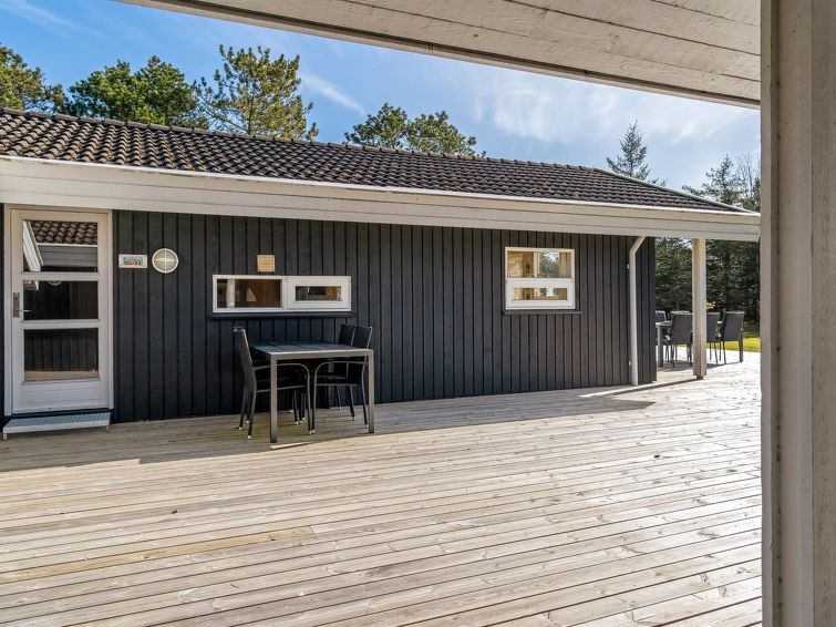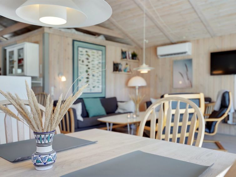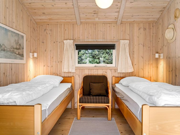"Akka" - 2km from the sea in NW Jutland", 3 rom hus 71 m2. Passer for 6 voksne + 1 barn. Stue, Studio med med, 1 dobbeltseng og TV. 1 rom med, 1 dobbeltseng. 1 rom med 2 senger. 1 rom med, 1 dobbeltseng. Kjøkken (stekeovn, oppvaskmaskin, 4 keramiske kokeplater, mikrobølgeovn, frys). Dusj/WC. Terrasse 10 m2, dekt. Fasiliteter: høy barnestol barneseng (ekstra). Internett (trådløs LAN [WLAN]). Vennligst merk: røykfri bolig. Max kjæledyr / hund tillatt 1 kjæledyr / hund tillatt.