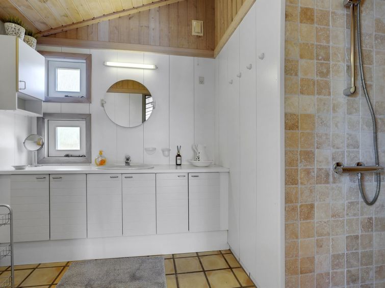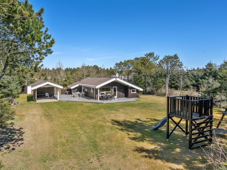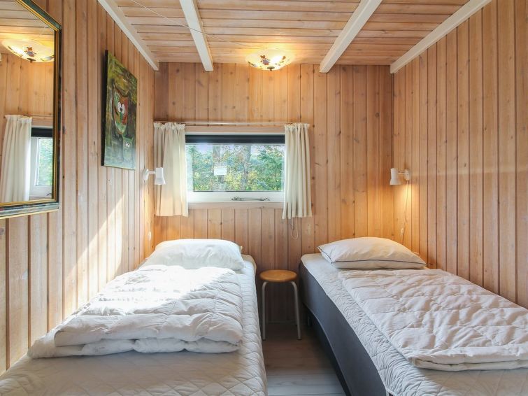 Enmannsbolig, bygget i 1987. 2 km fra sjøen. Privat: uberørt tomt 1'544 m2. Utendørs dusj, terrasse (40 m2), lekeplass (huske). I huset: vaskemaskin. Bilporten. Daglivarehandel 200 m. Eieren godtar ikke noen ungdomsgrupper.