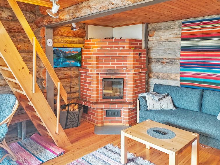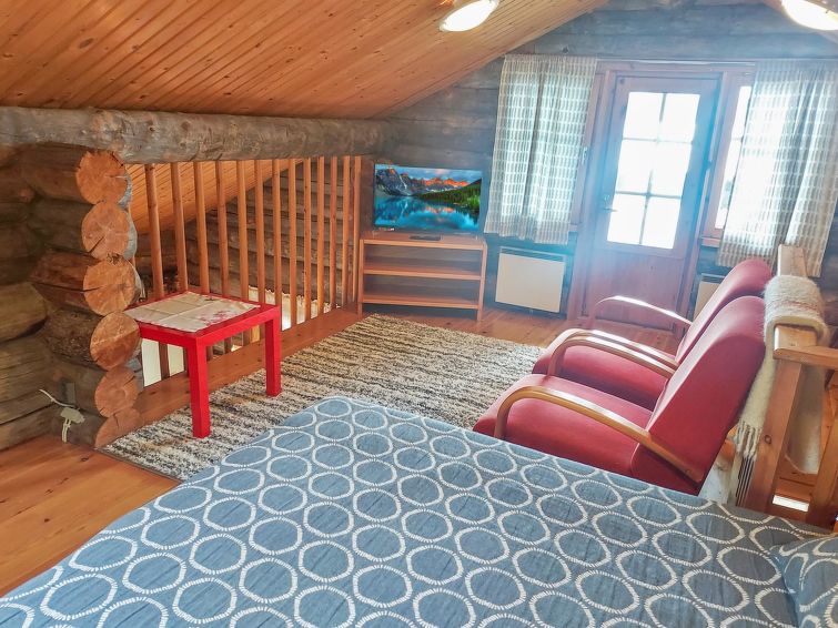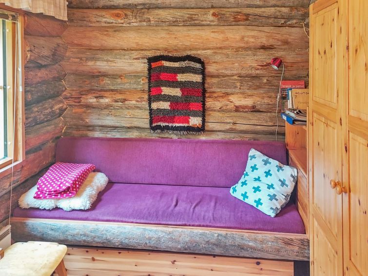 living room: convertible sofa for two, combined kitchen/living room, wood-heated sauna. Log cottage situated by the Lake Alakitkajärvi. Nice, grassy yard.