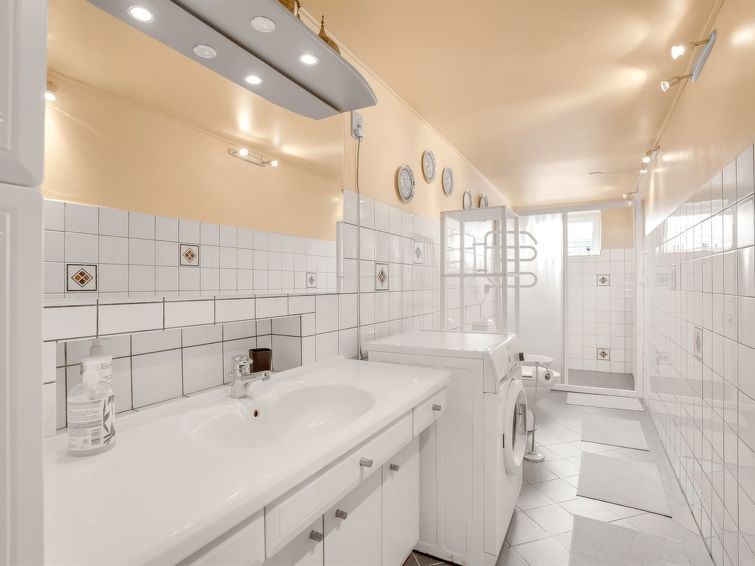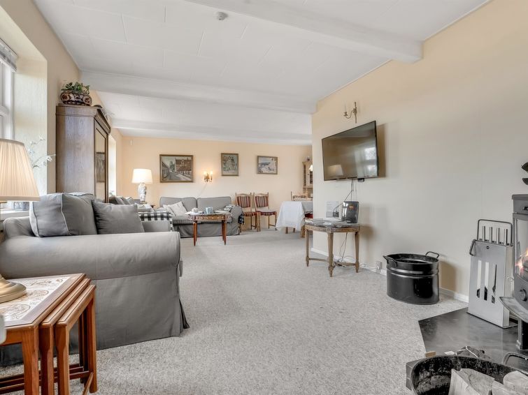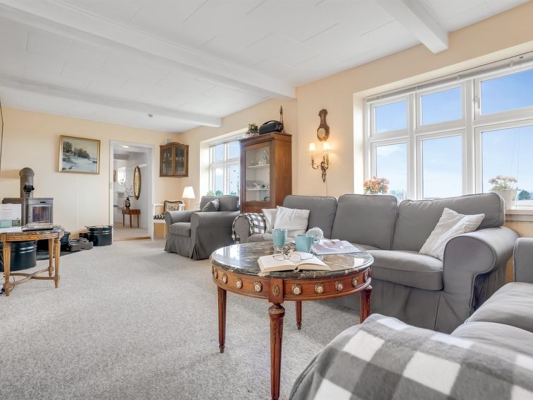 "Albertine" - 600m from the sea in Lolland, Falster and Mon", 3 rom leilighet 148 m2. Passer for 8 voksne. Stue med, TV og radio. 1 rom med, 1 dobbel sovesoffa. Kjøkken (stekeovn, oppvaskmaskin, 4 induksjonskomfyr, mikrobølgeovn, frys). Dusj/WC. øverste etasje: 1 rom med, 1 dobbeltseng. 1 rom med, 2 dobble sovesoffaer. Utsikt av havet. Fasiliteter: høy barnestol barneseng (ekstra). Internett (trådløs LAN [WLAN]). Vennligst merk: røykfri bolig.