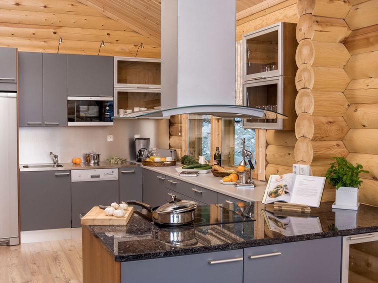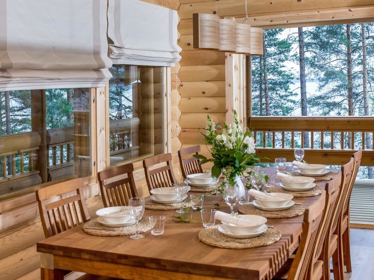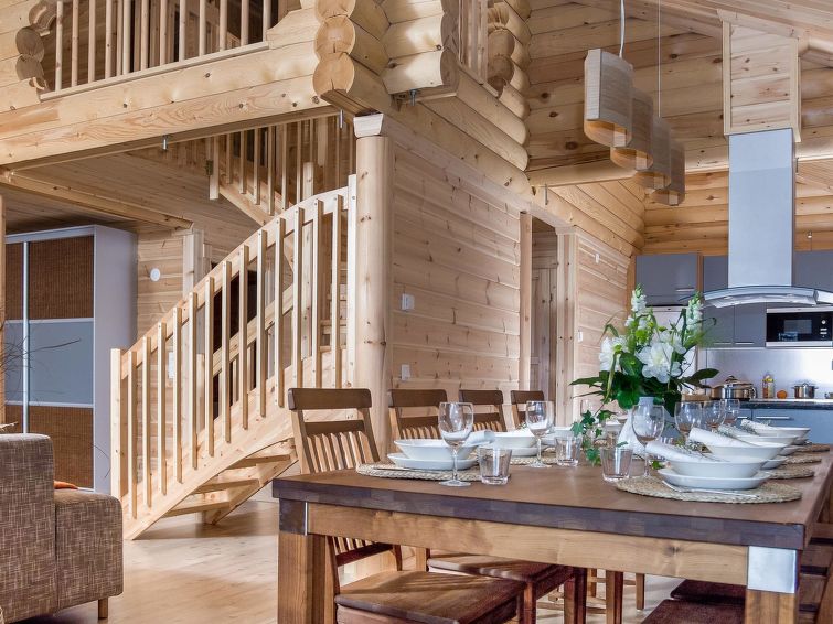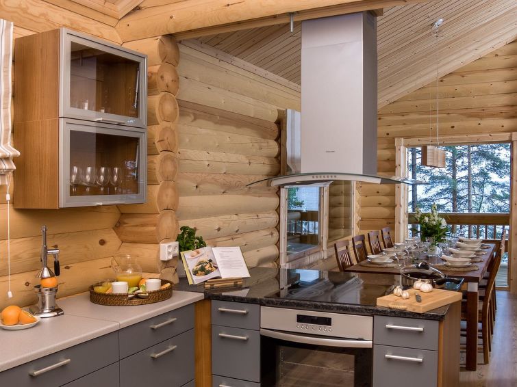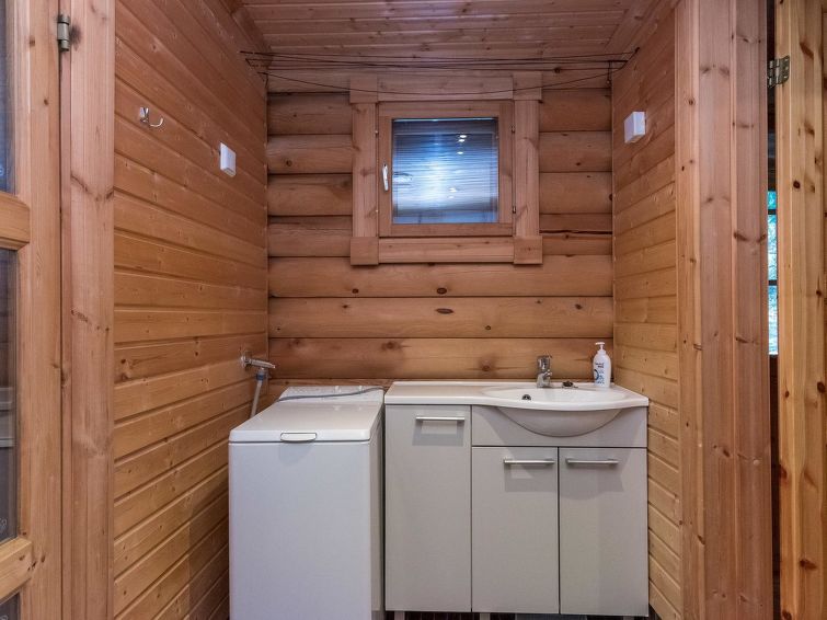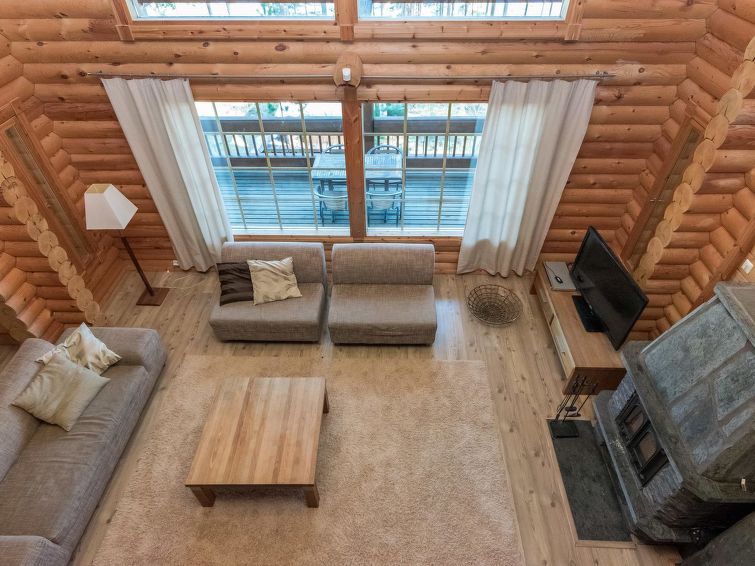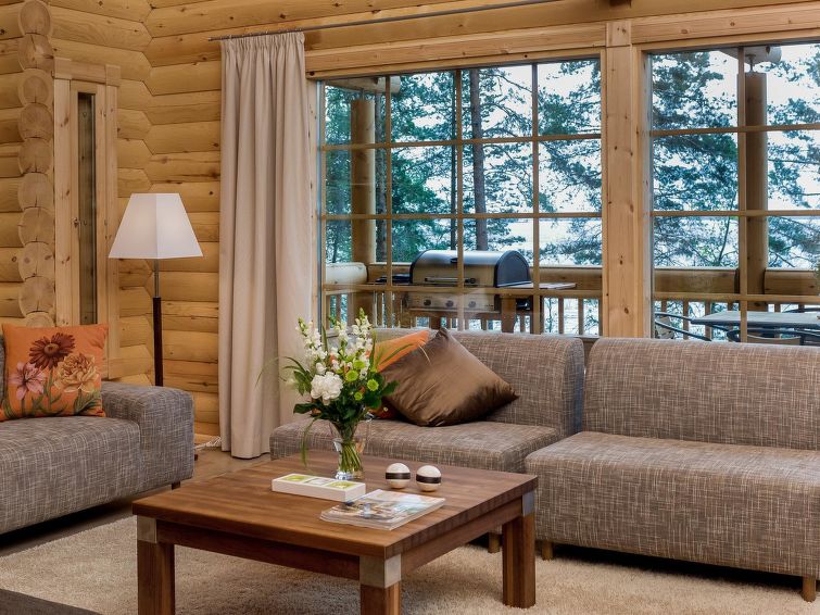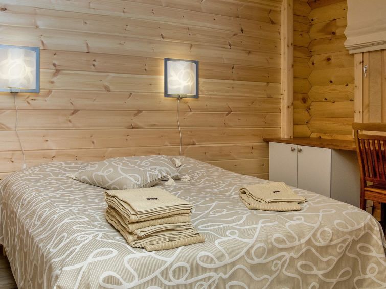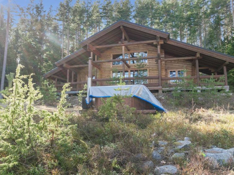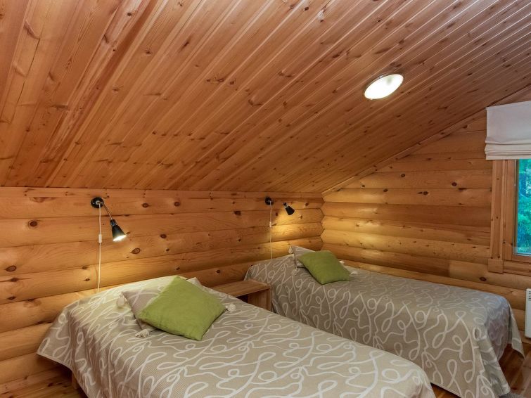 Log cottage 2006, kitchen, living room, two bedrooms (10 m²) each with two beds, dressing room, washroom, sauna (electric stove), large covered terrace. Upstairs, two bedrooms (7 m²) each with two beds, loft with a sofa bed for 1 person. 4 G Wi-Fi access.