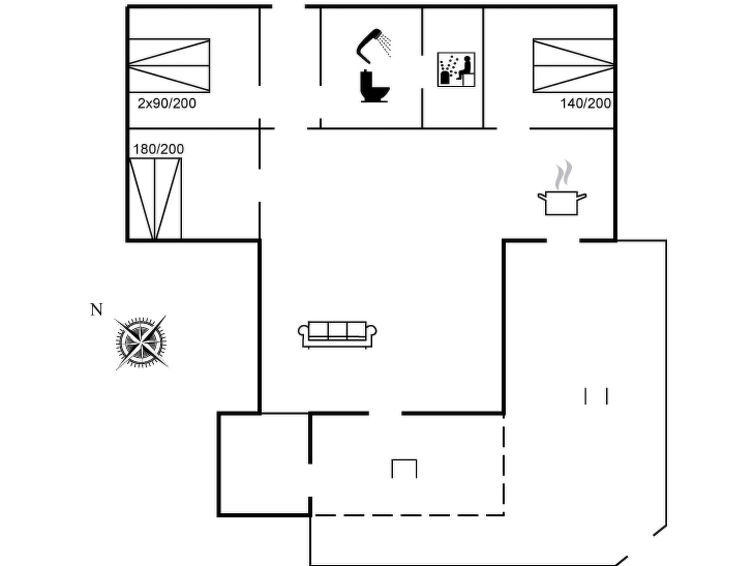 "Aletha" - 180m from the sea in NE Jutland", 3 rom hus 91 m2. Passer for 6 voksne. Stue med, TV og CD-spiller. 1 rom med, 1 dobbeltseng. 1 rom med, 1 dobbeltseng. 1 rom med, 1 dobbeltseng. Kjøkken (stekeovn, oppvaskmaskin, 4 induksjonskomfyr, mikrobølgeovn, frys). Dusj/WC. Terrasse 6 m2, dekt. Fasiliteter: høy barnestol. Internett (trådløs LAN [WLAN]). Vennligst merk: røykfri bolig.