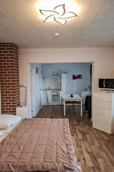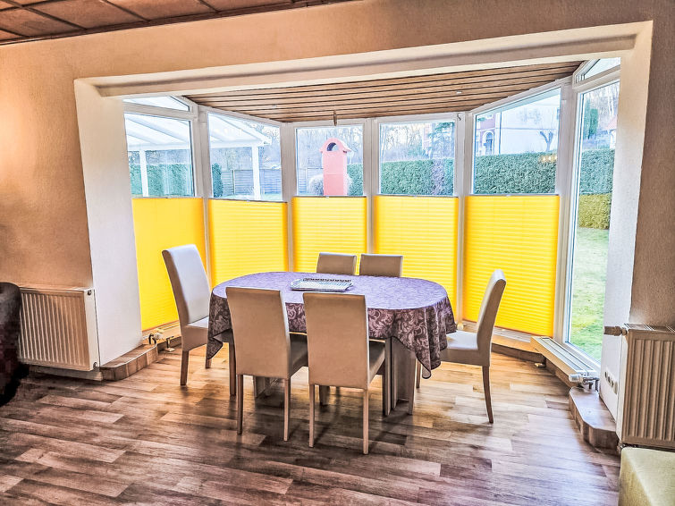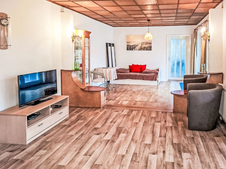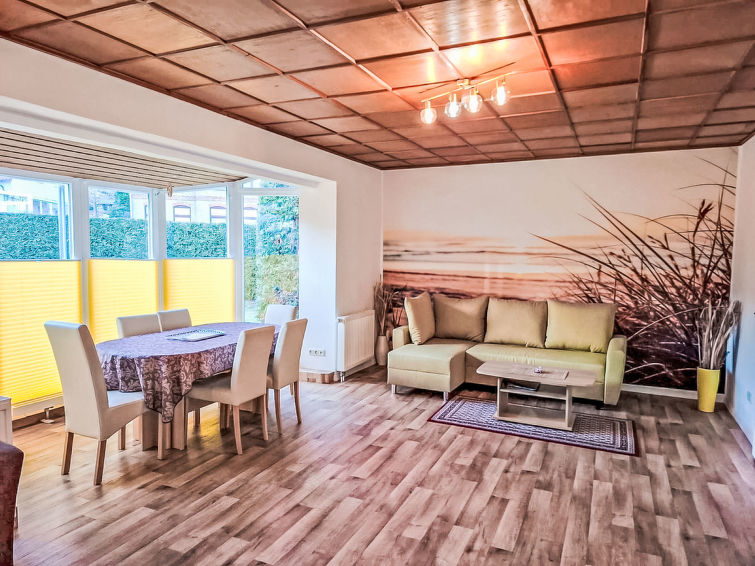 Enmannsbolig "Alexorella". 150 m fra sentrum av Godern, i utkanten, 2.5 km fra sentrum av Pinnow, 10 km fra sentrum av Schwerin, 200 m fra innsjø. Privat: tomt 900 m2 (inngjerdet) med plen. I huset: fotballsbord. Parkering (for 3 biler) på tomten. Supermarked 2.5 km, strand med gress 200 m, innendørs pool 10 km. Golfbane(18 hull) 10 km. Stille og rolig område. Stillhet og god oppførsel.