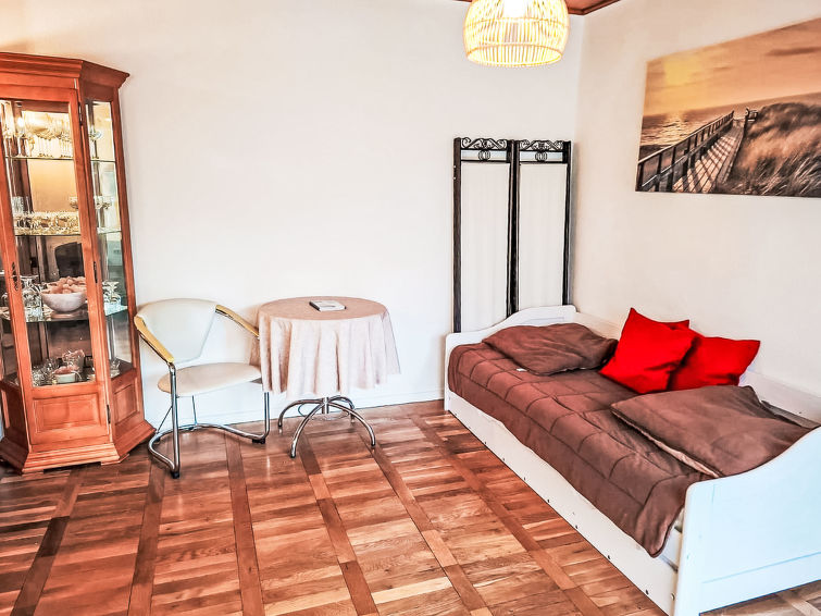 3 rom hus 130 m2. Koseligt møbler: stue/soverom med 1 seng, 1 uttrekkbar seng, spisebord og satelit-TV (flatskjerms TV), radio og DVD. Utgang til terrassen. Gjennomgangsrom med, 1 dobbeltseng, spisebord, kjøkkenhjørne og dusj/WC. Utgang til terrassen. 1 dobblet rom. Lekerom. Kjøkken (stekeovn, oppvaskmaskin, 4 keramiske kokeplater, brødrister, vannkoker, mikrobølgeovn, frys, elektrisk kaffemaskin). Dusj/WC. Gassoppvarming. Parkett. Terrasse dekt, beliggenhet mot sør-øst terrasse, beliggenhet mot vest. Terrassemøbler, grill (flyttbar). Fasiliteter: strykejern, høy barnestol barneseng. Internett (trådløs LAN [WLAN]). Vennligst merk: røykfri bolig. Røykvarsler. Bestillinger er kun tillatt for ferieopphold.